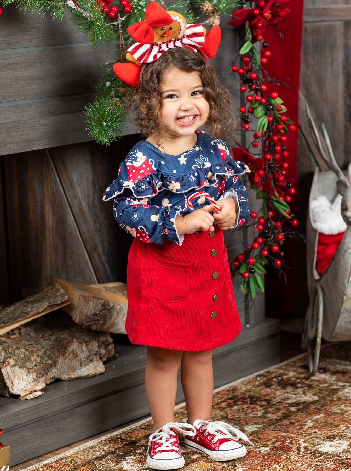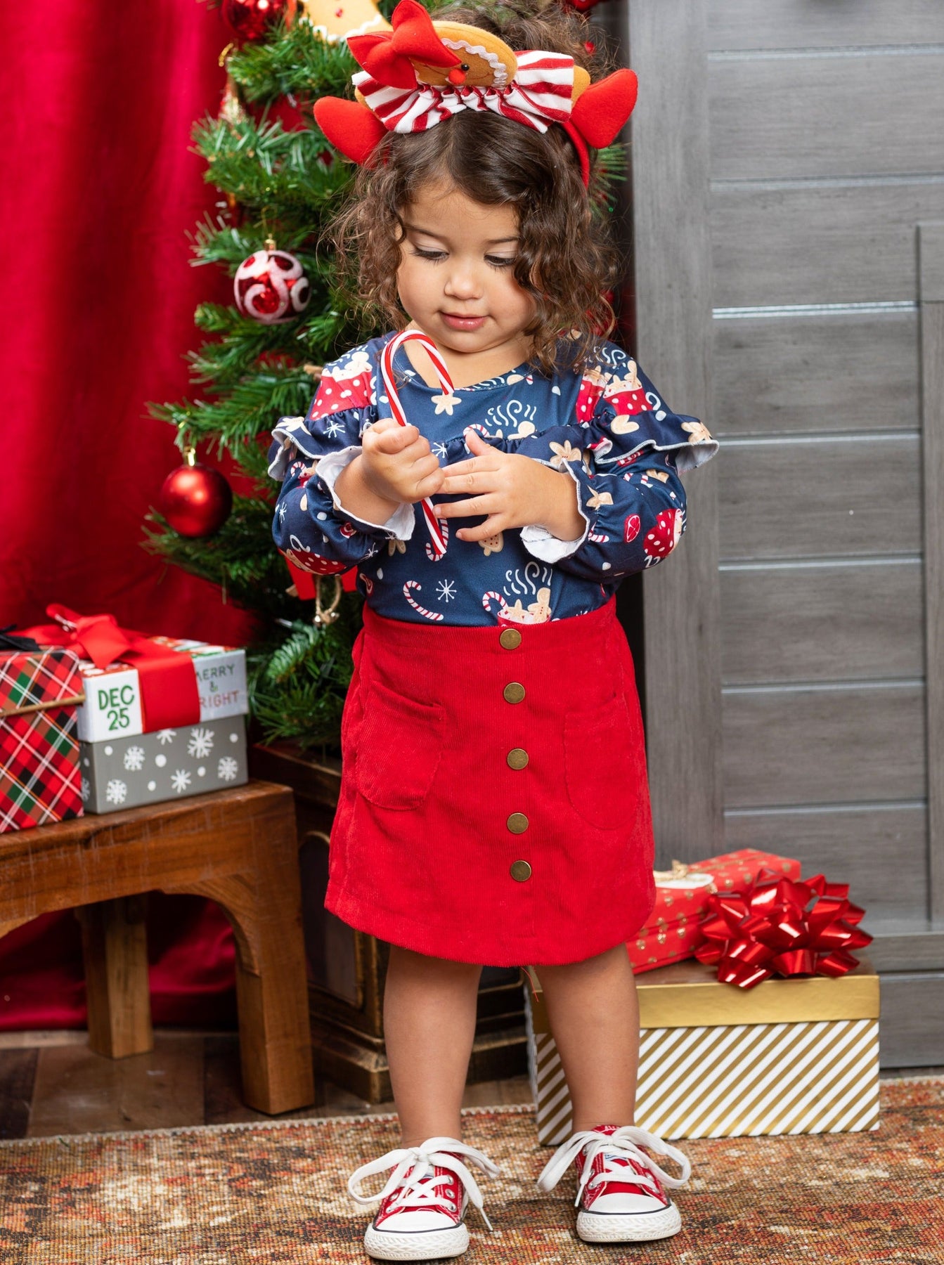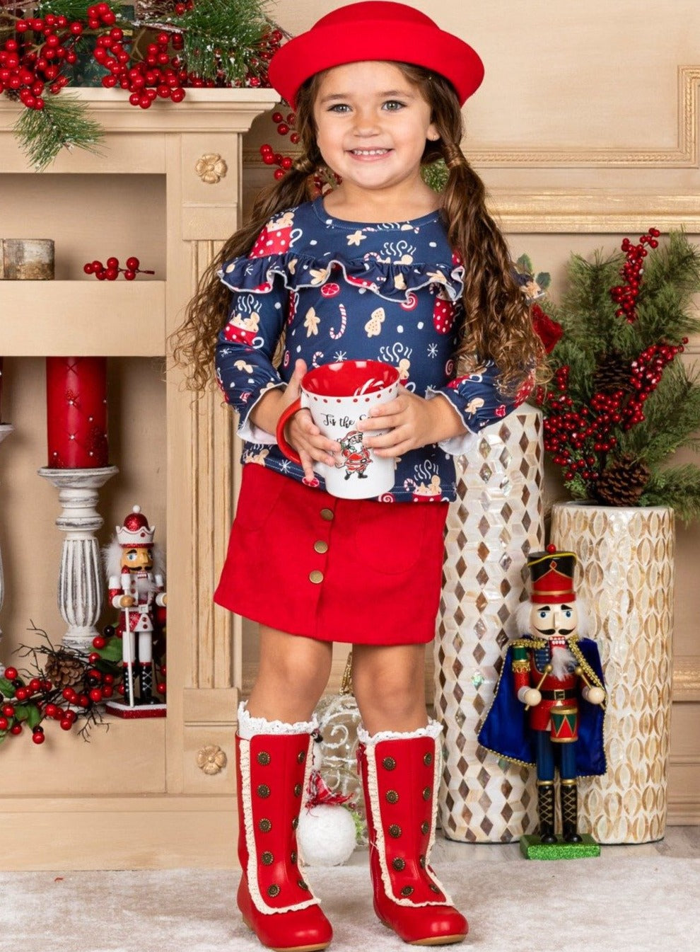 Winter is here, so it's time to chill and relax in our show-stopping skirt set. We didn't invent comfy couture, but we sure make it look good. And so will your sweet sugarplum!