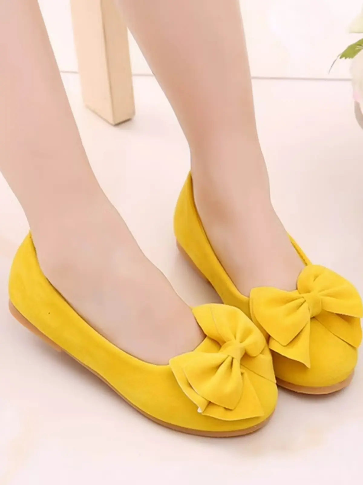 These vibrant yellow ballerina flats are just perfect for special occasion outfits. Adorned with large bows across the toes made from supple material, they are the epitome of girly chic. Perfect for casual and dressy outfits alike, and just the thing missing from your little girl's closet.