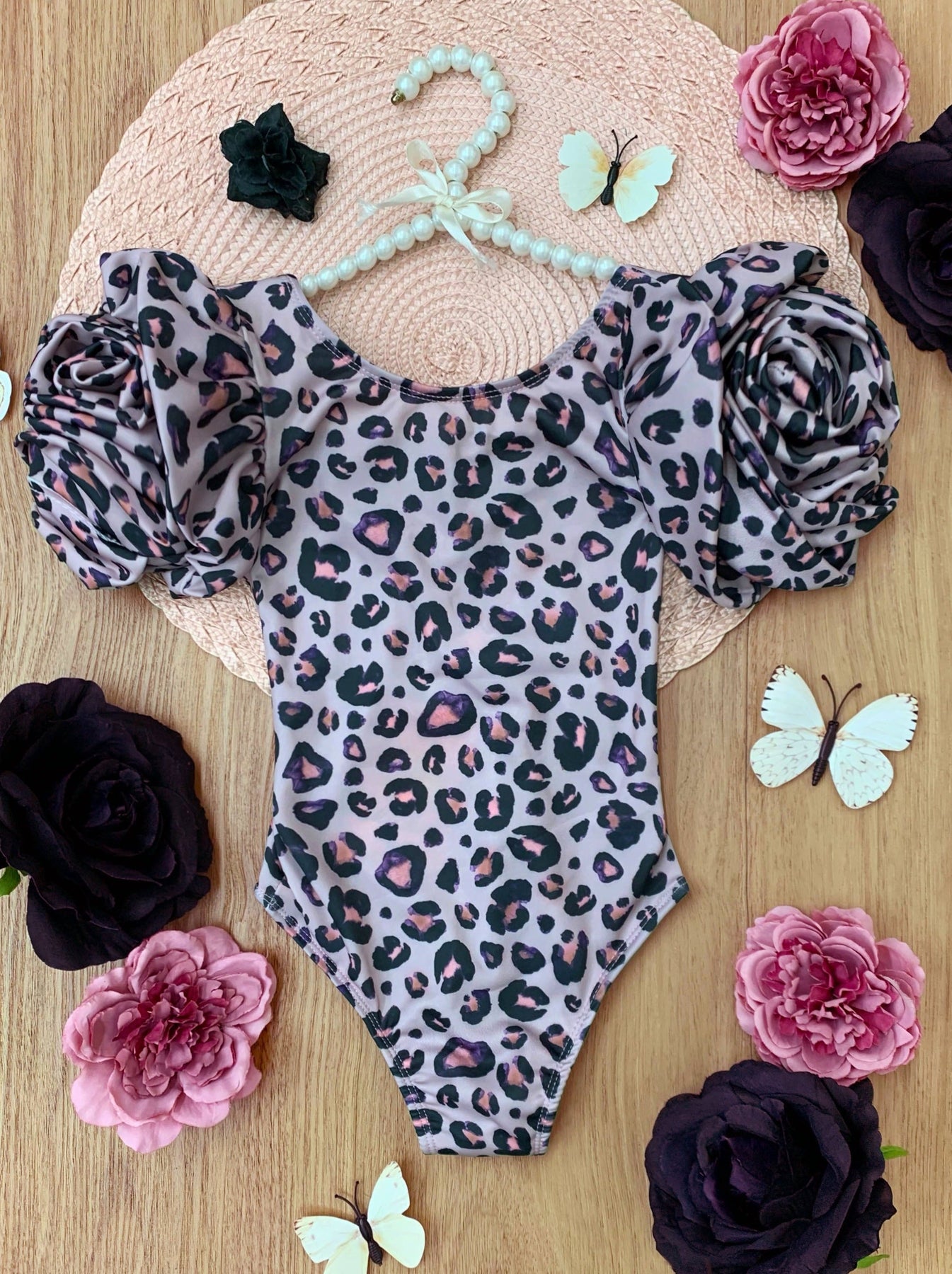 - Here's one swimsuit your diva will want to be SPOTTED in! Our leopard print rose sleeve one-piece makes sure waterplay is a fashionable affair. The signature sleeves will look their cutest both in and out of the water. Simply prrrfect!