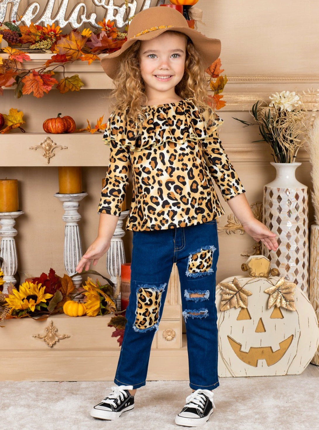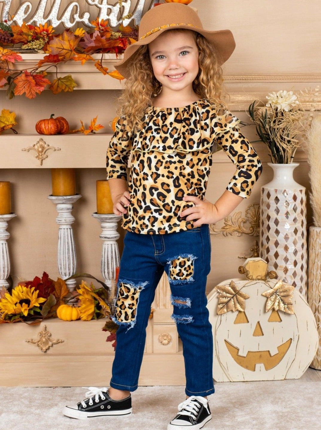 - Finally! A patched jeans set that's worthy of her autumn wish list. Time to put your active angel in some adorable leopard print fashion. If you're looking for couture style without sacrificing comfort, look no further; we've got your little one covered.
