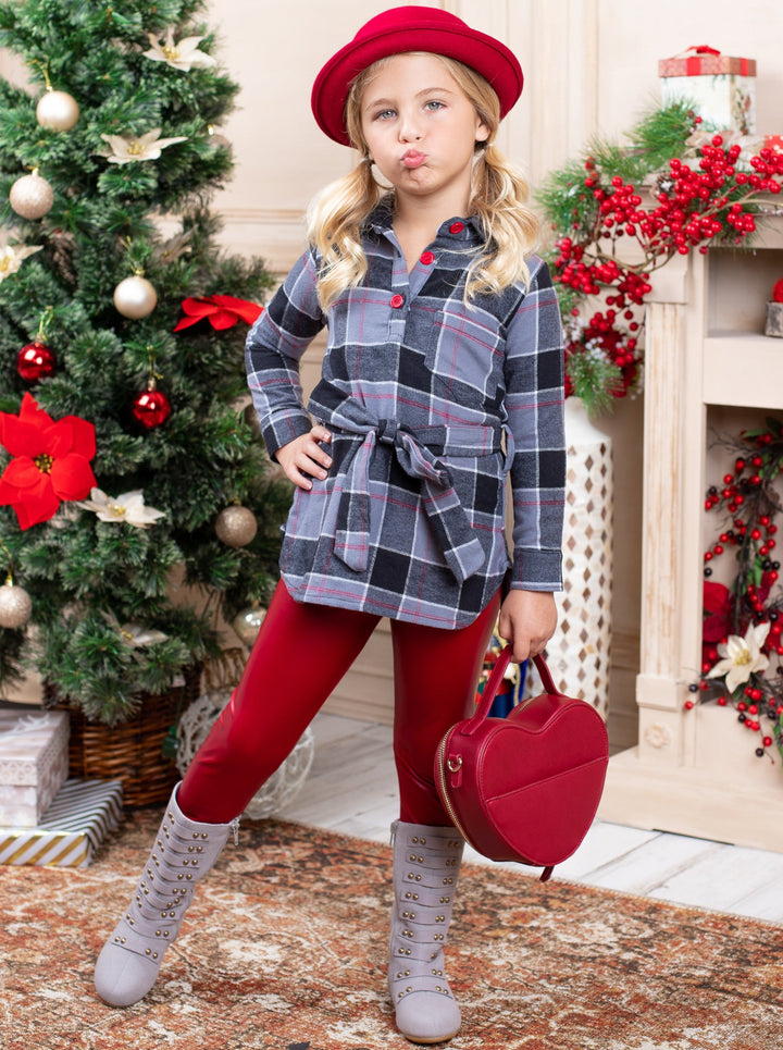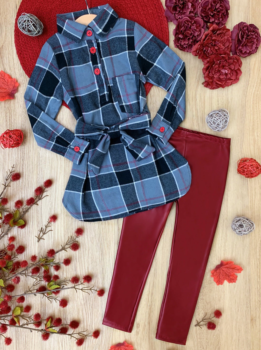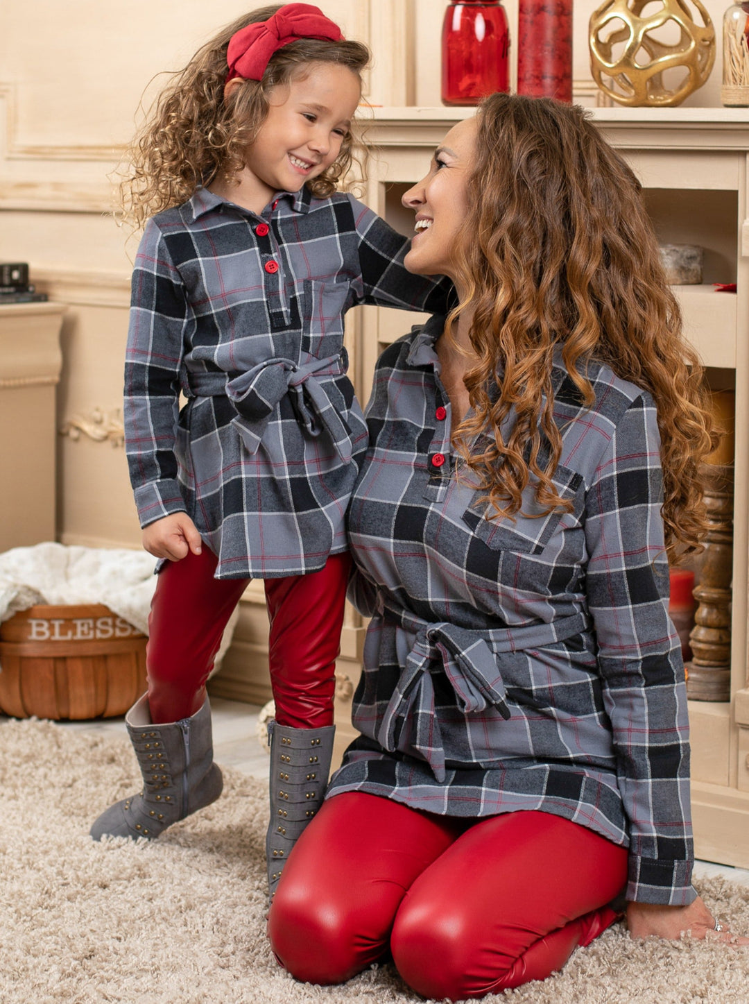 - Sleigh queens and long may your rein wearing such joyously fashionable matching plaid outfits. The vegan leather leggings will make sure you stand out from the rest, and we KNOW you'll love the belted, button-down shirt flattering for both mother and daughter.