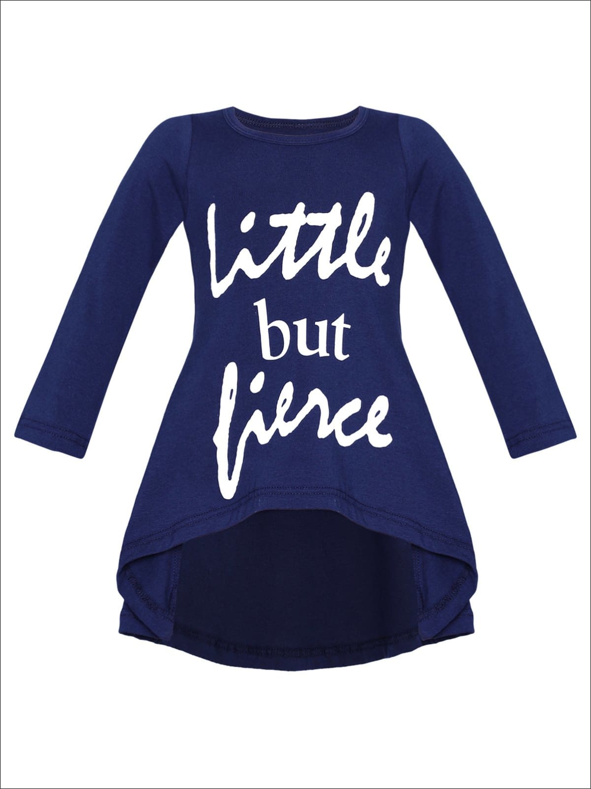 Long-sleeve hi-lo top with "Little but Fierce" text print