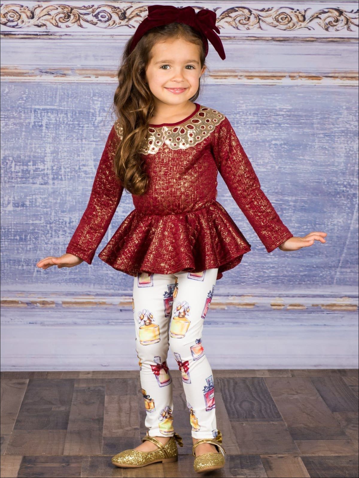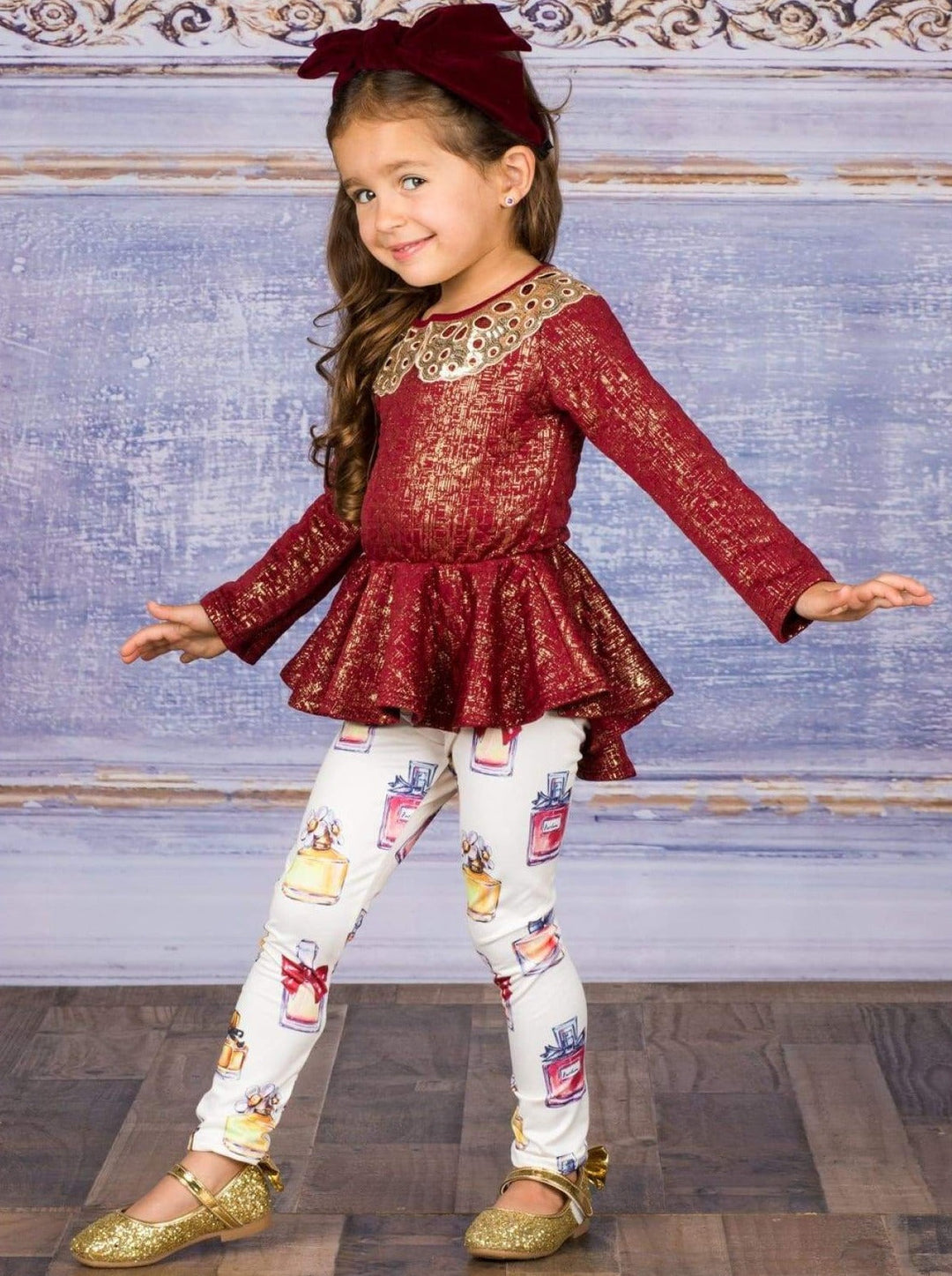 Girls Long Sleeve Peplum Bow Top & Matching Leggings Set - Girls Fall Dressy Set