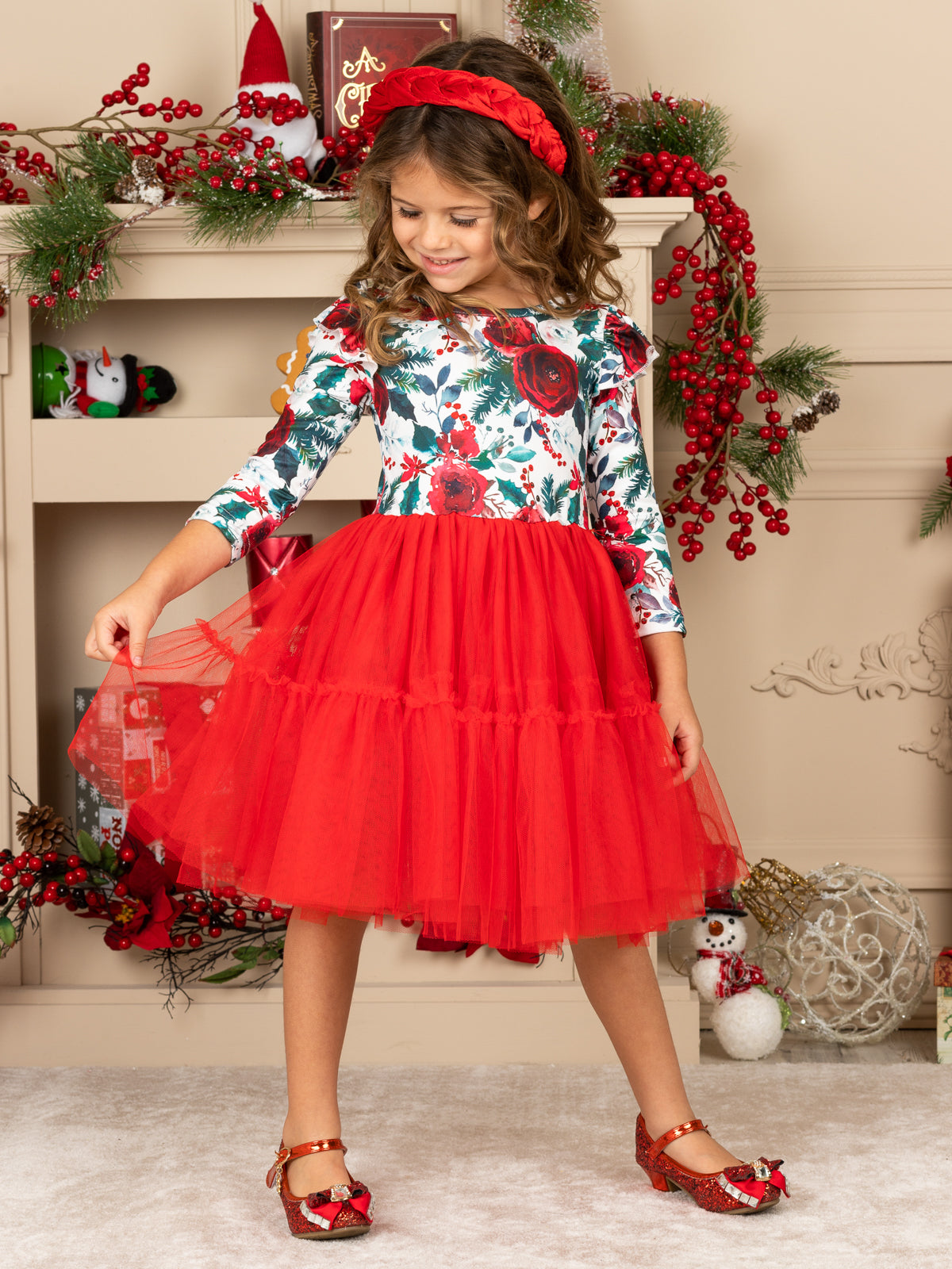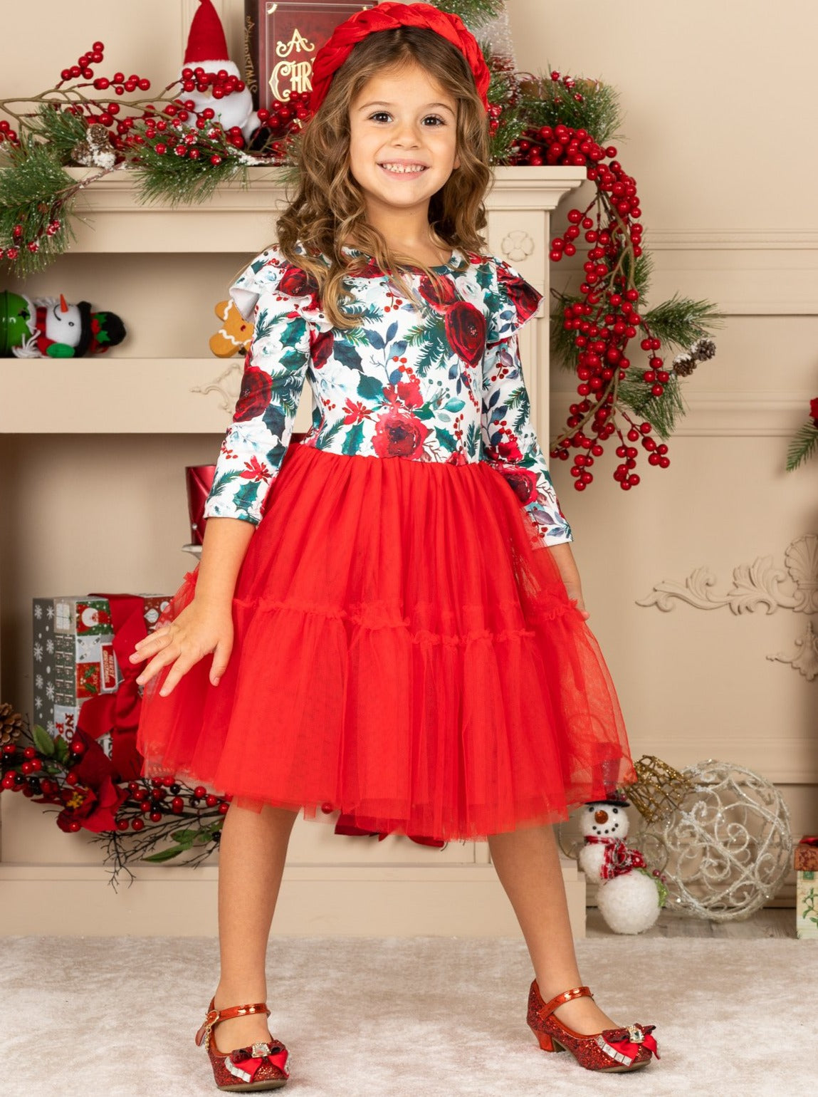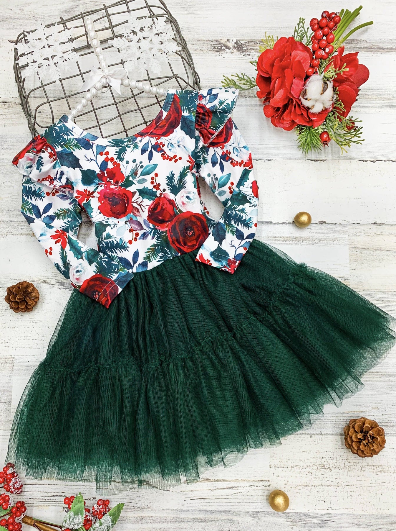 Cute Christmas Dresses | Little Girls Winter Floral Layered Tutu Dress