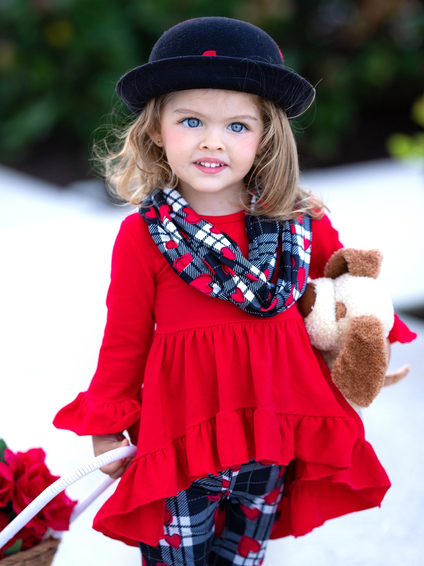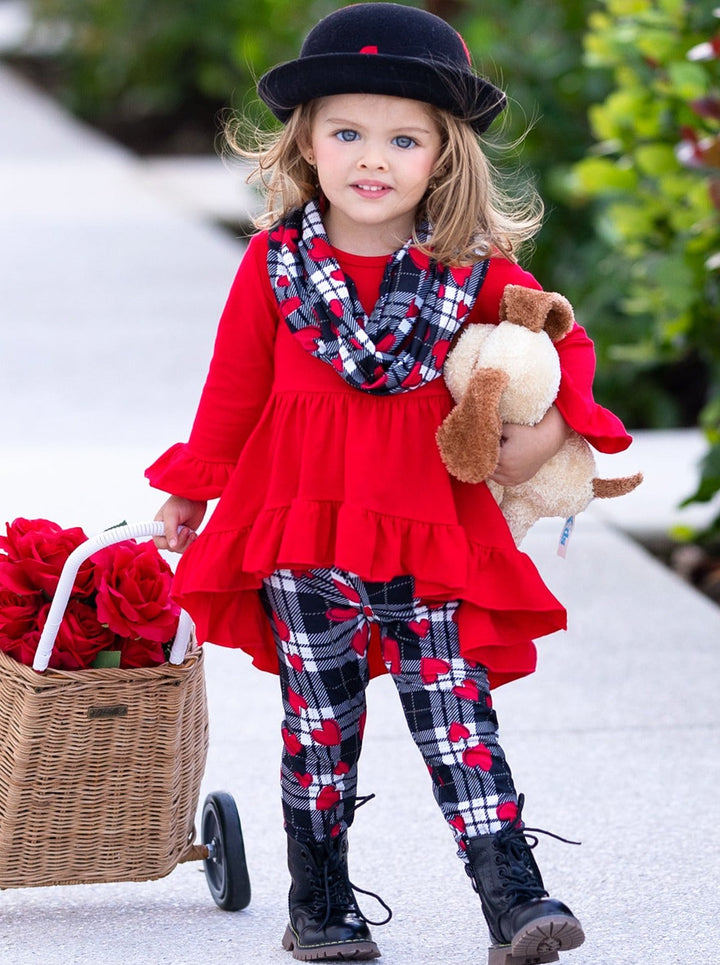 - Wrap your little bundle of joy in this plaid-perfect legging set for girls to complete her Valentine's Day. Featuring a ruffled tunic, stunning leggings, and a matching infinity wrap scarf, she'll be love-struck from the moment she lays eyes on it!