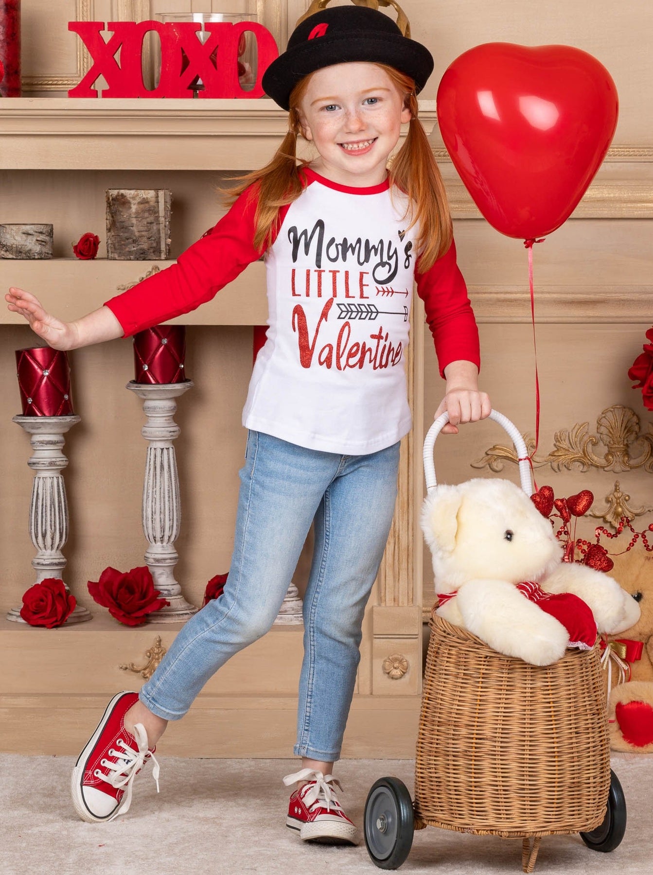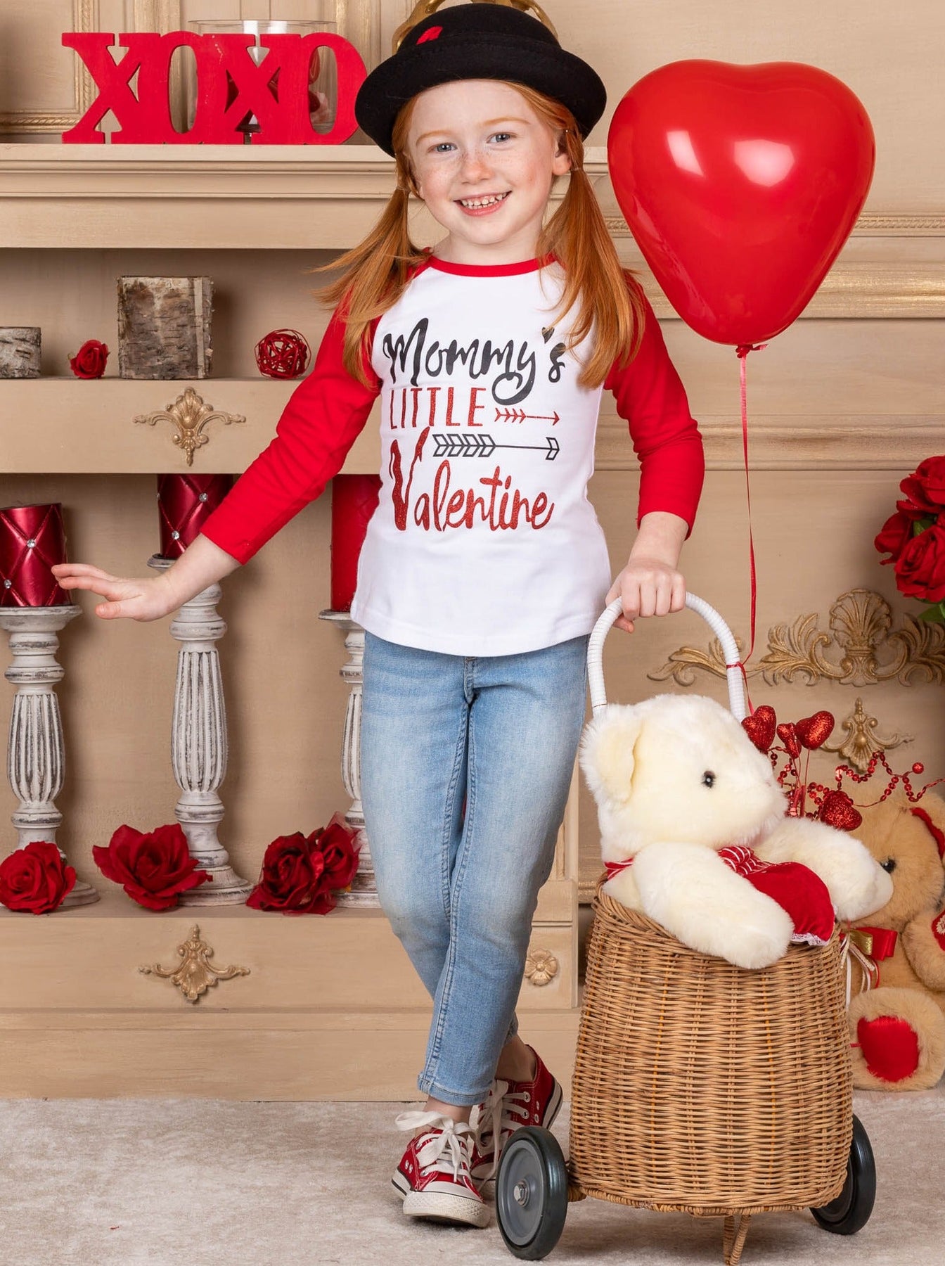 - Mommy's little Valentine will look darling in this cute n' casual raglan top. Bright red sleeves and super-cute font is a fun addition to any V-day celebrations or mommy & me selfies.