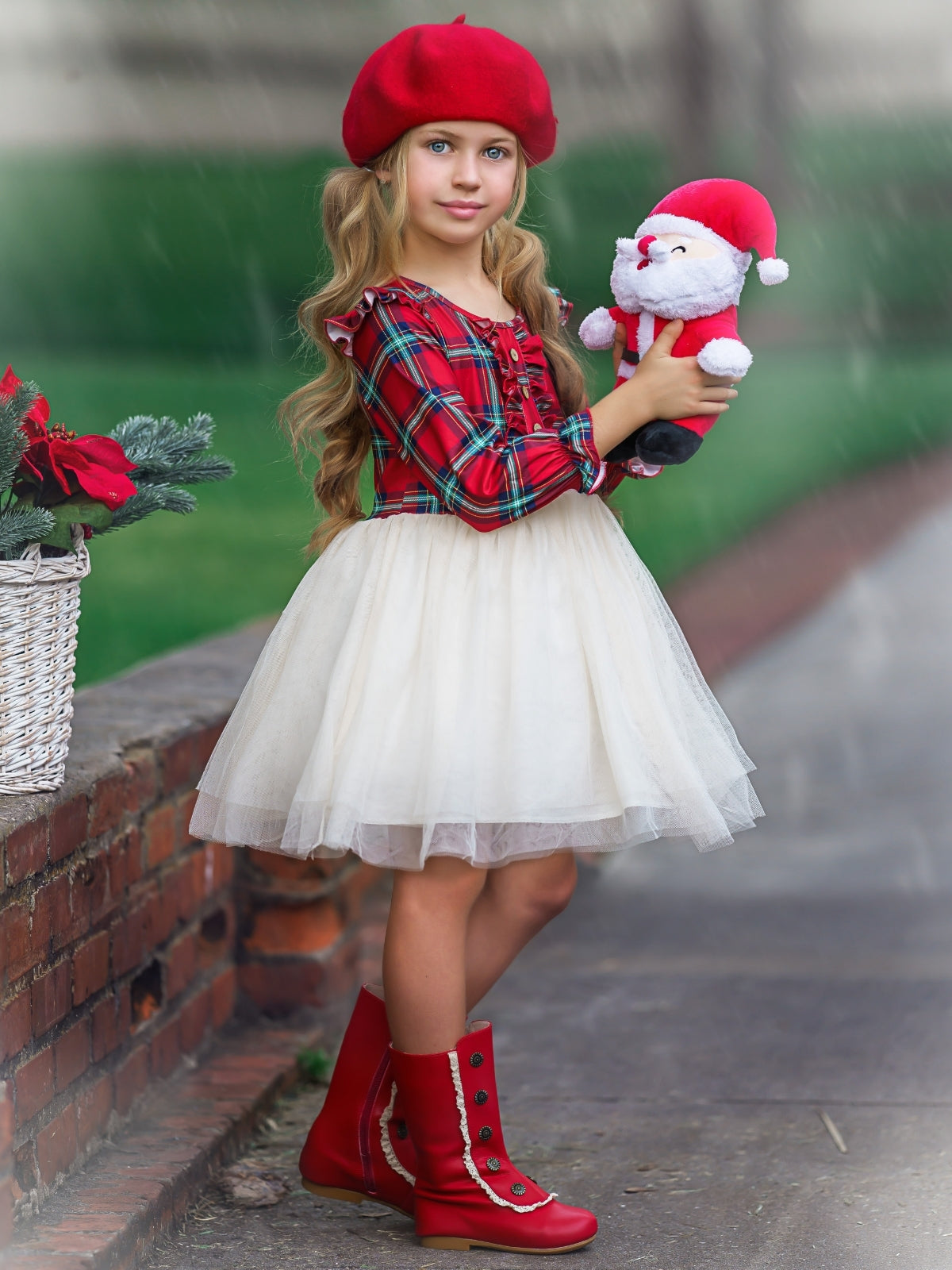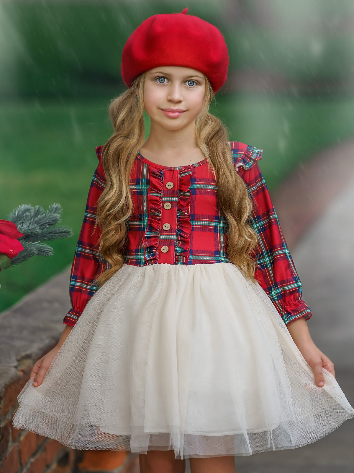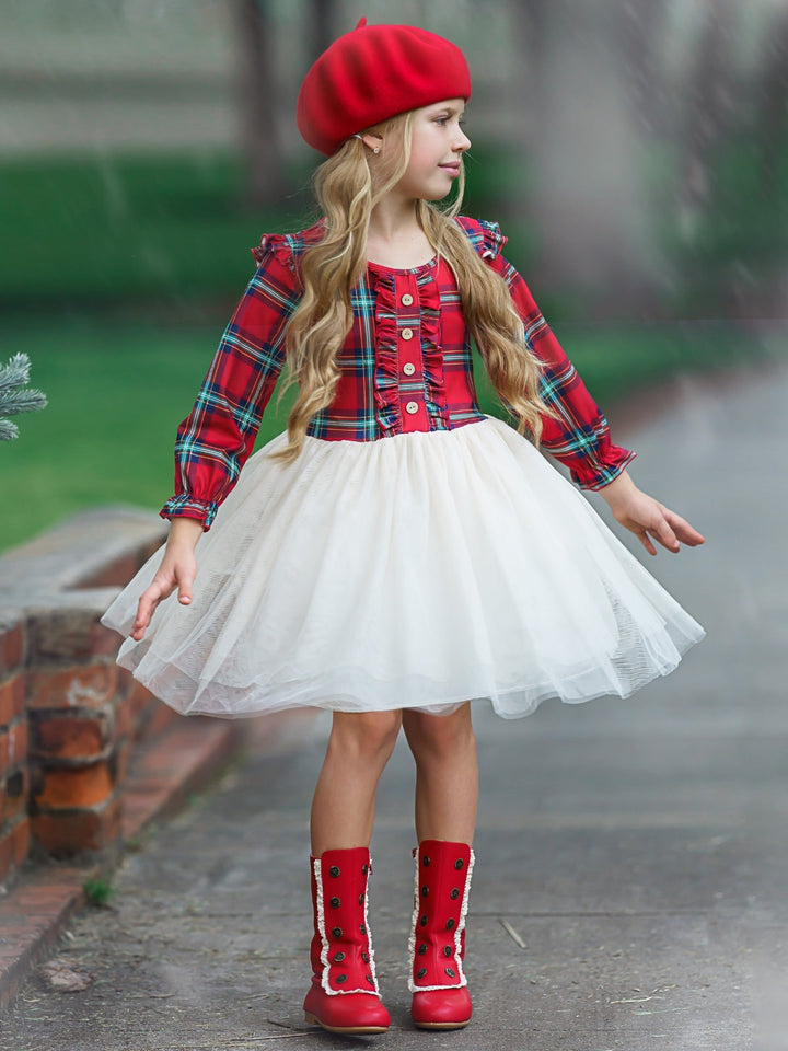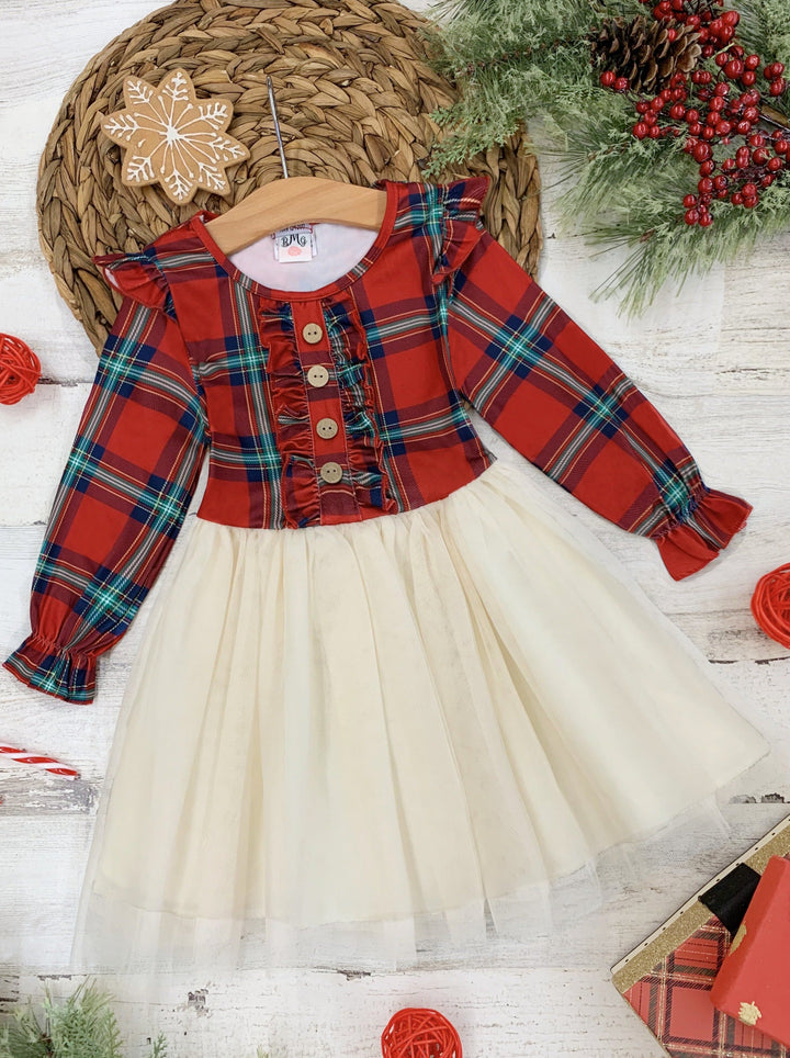 Girls Long Sleeved Tartan Plaid Ruffled Tutu Dress - Mia Belle Girls