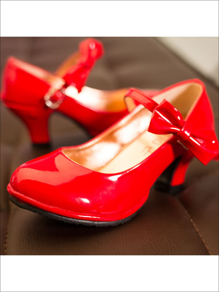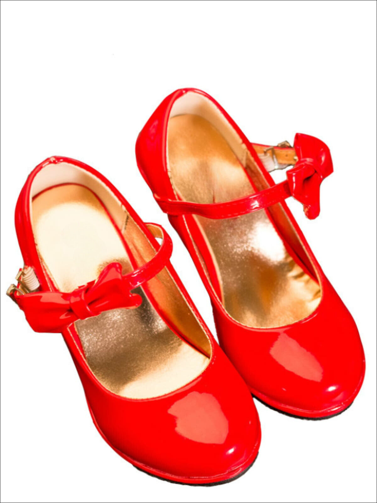 - Step into sweetness with these adorable red Mary Jane shoes, complete with a darling bow detail, designed to make any outfit shine.