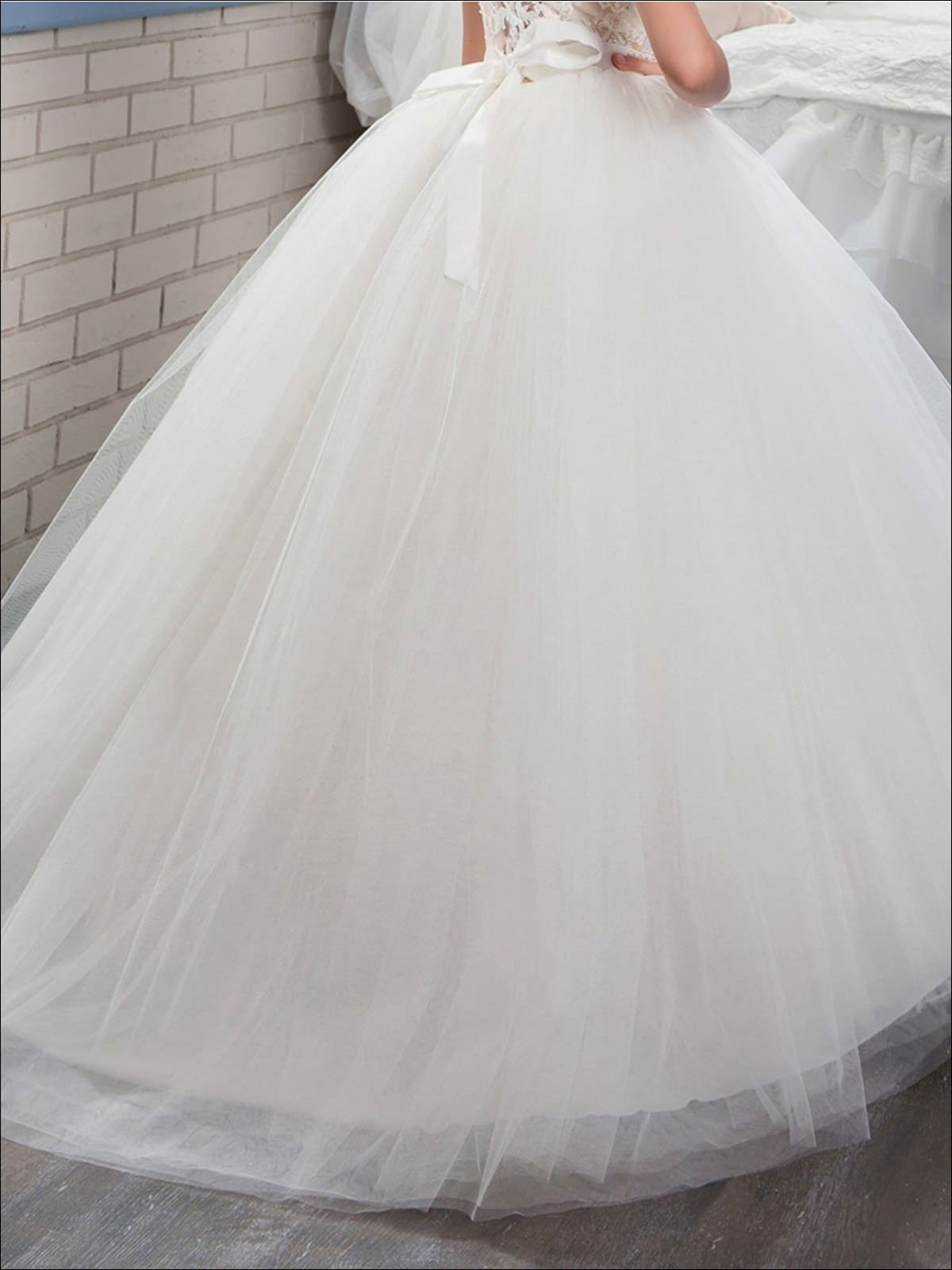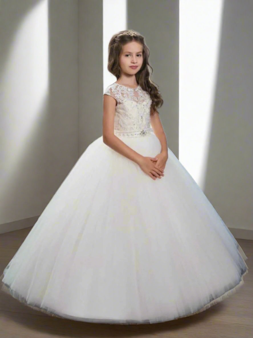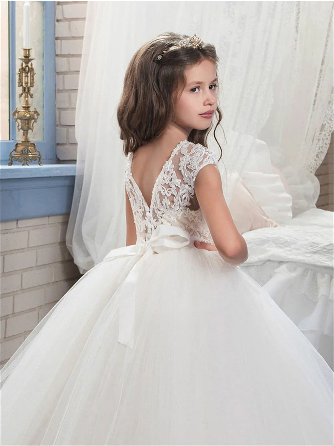 The most gorgeous lace ballgown for the most gorgeous girl! This stunning number is all about elegance, with a lace bodice, a v-back, and a dramatic tulle skirt that will have everyone turning their heads. Guaranteed to make her look like a million dollars!