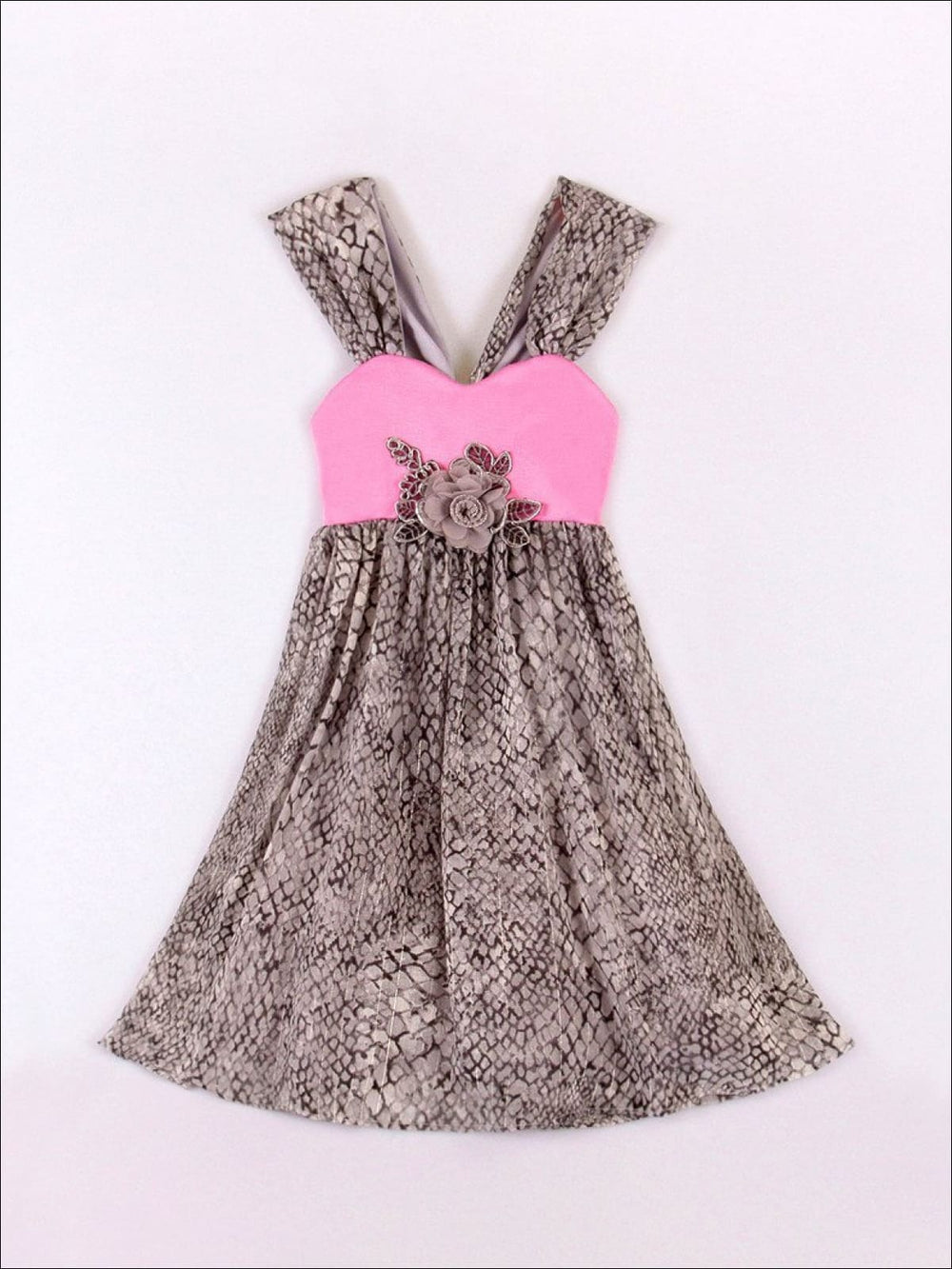 Girls Pink And Silver Empire Waist Halter Party Dress