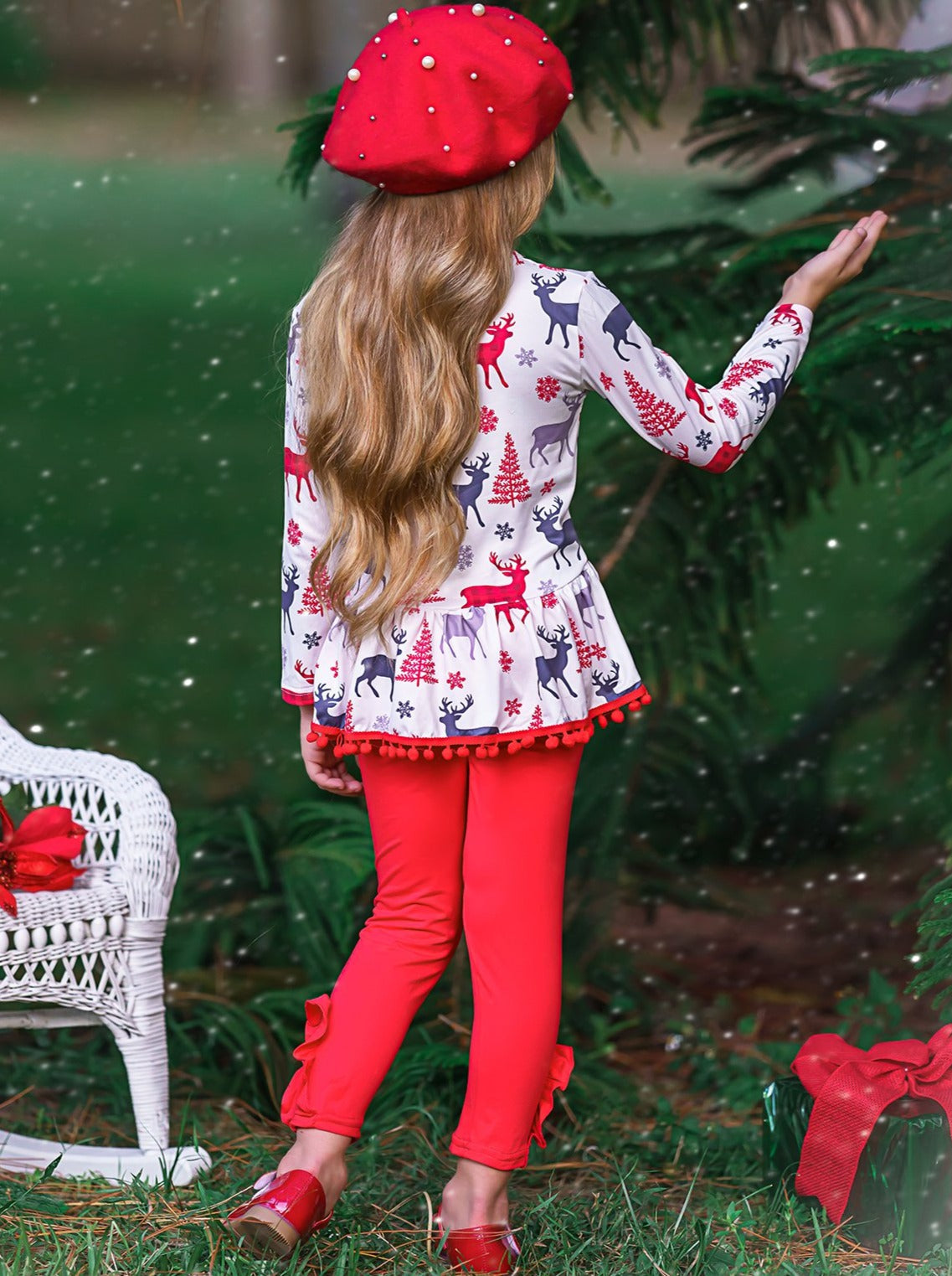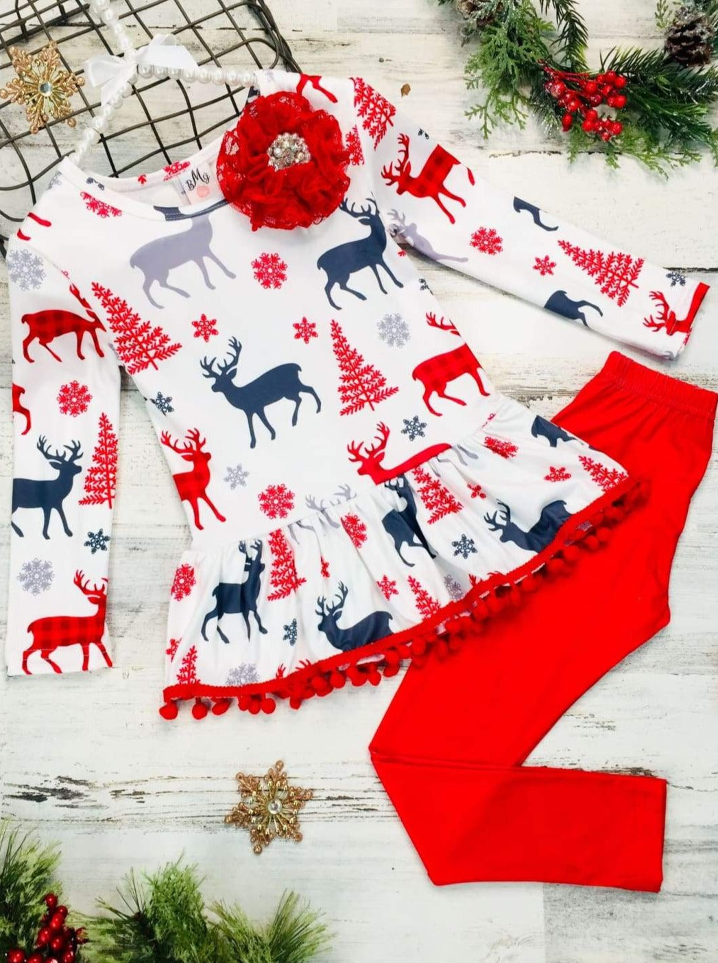 There will be no resting Grinch faces this Christmas season with our impeccable tunic and leggings set. Added ruffles to the bottom of the leggings and large flower applique make this a truly stand-out winter ensemble for your sweet girl.