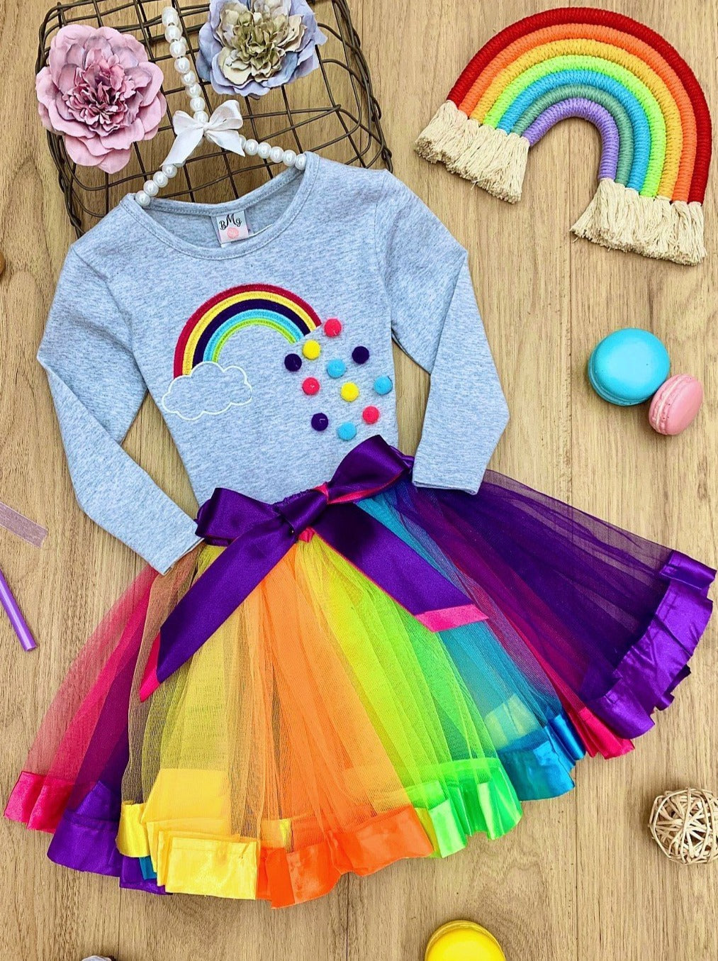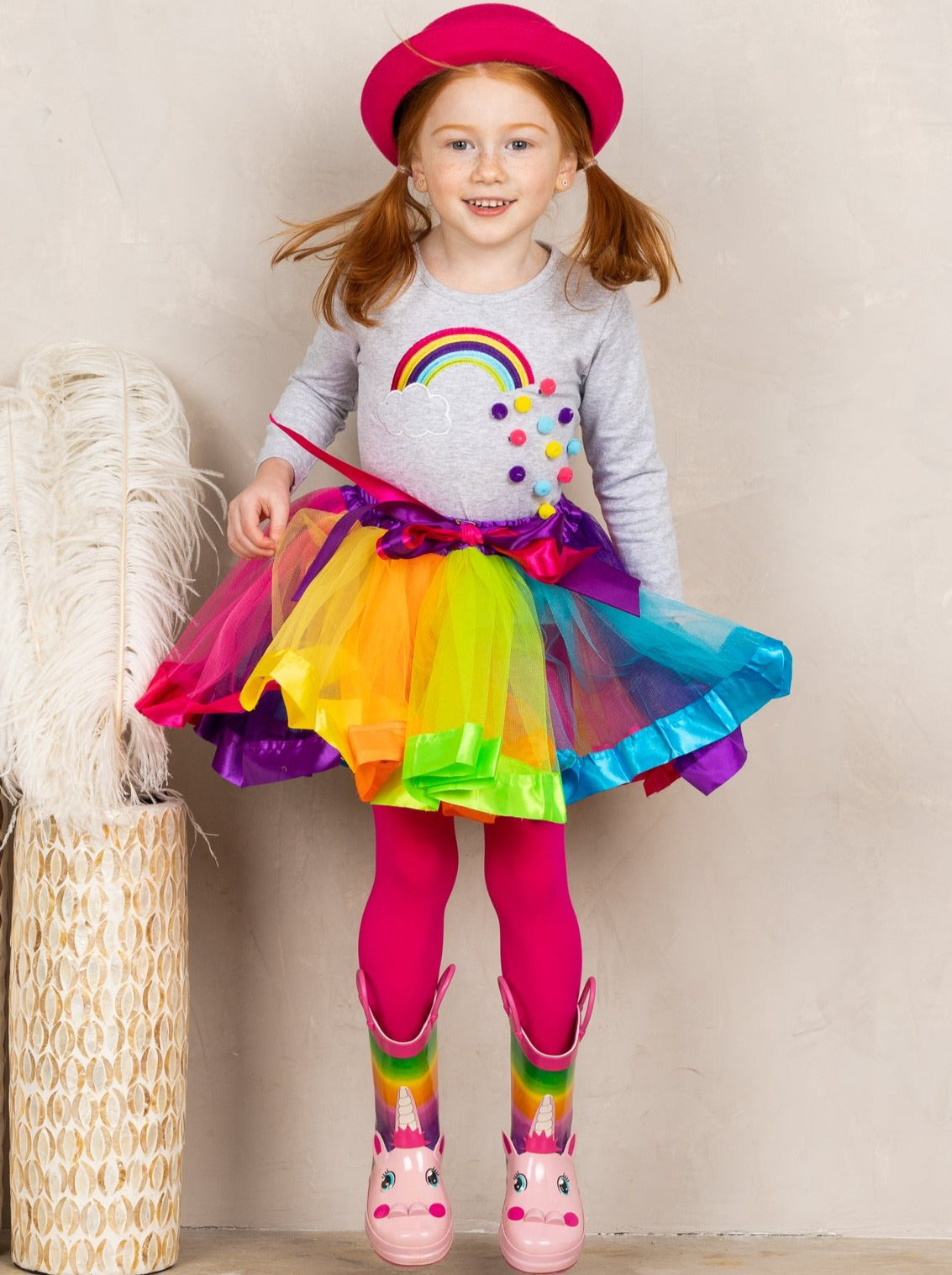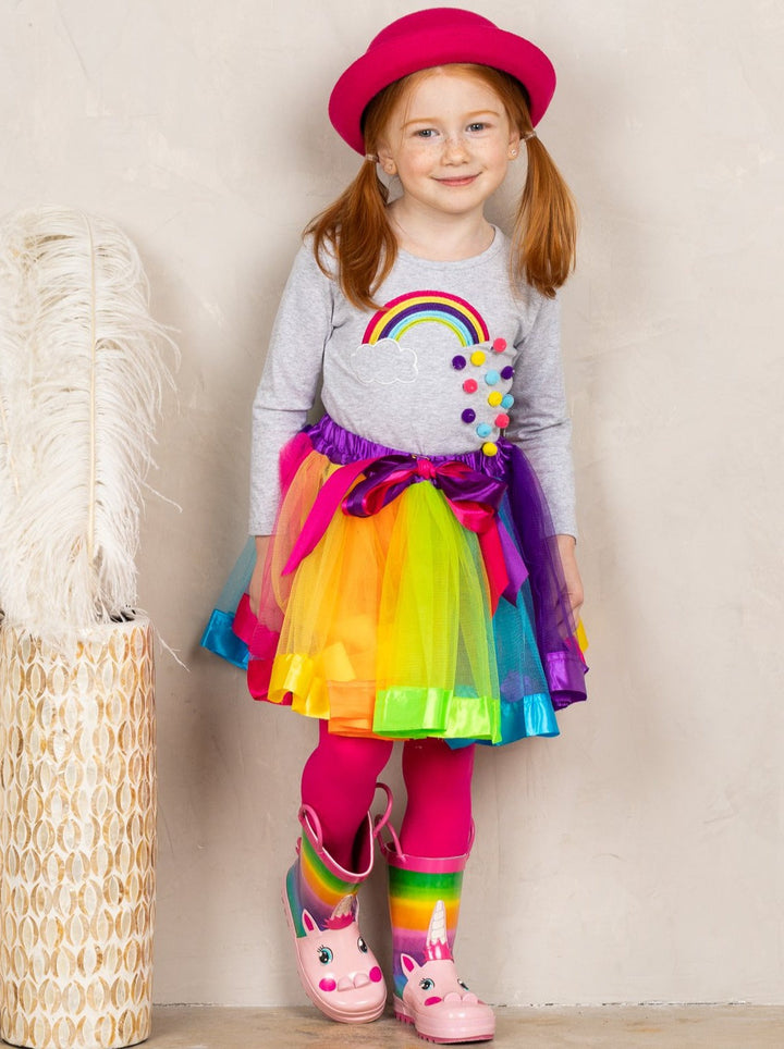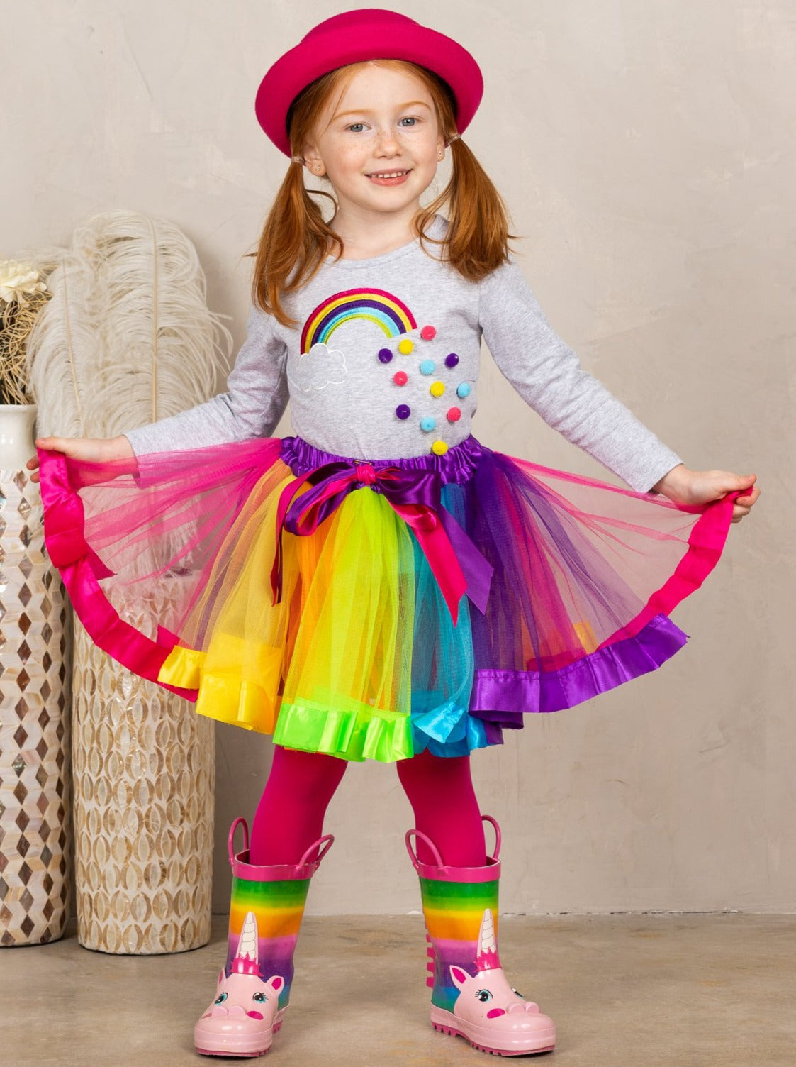 Cute Girls Outfits | Rainbow Tulle Tutu Skirt Set | Every Day Outfits