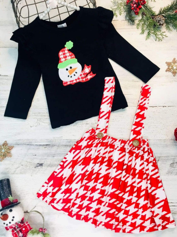Hearken to the merry bells of the season and give her a ruffle-trimmed top layered under a frock of cheerful prints to dress up her holidays. A Santa or snowman applique steal the show and match the overall dress to create a festive ensemble!