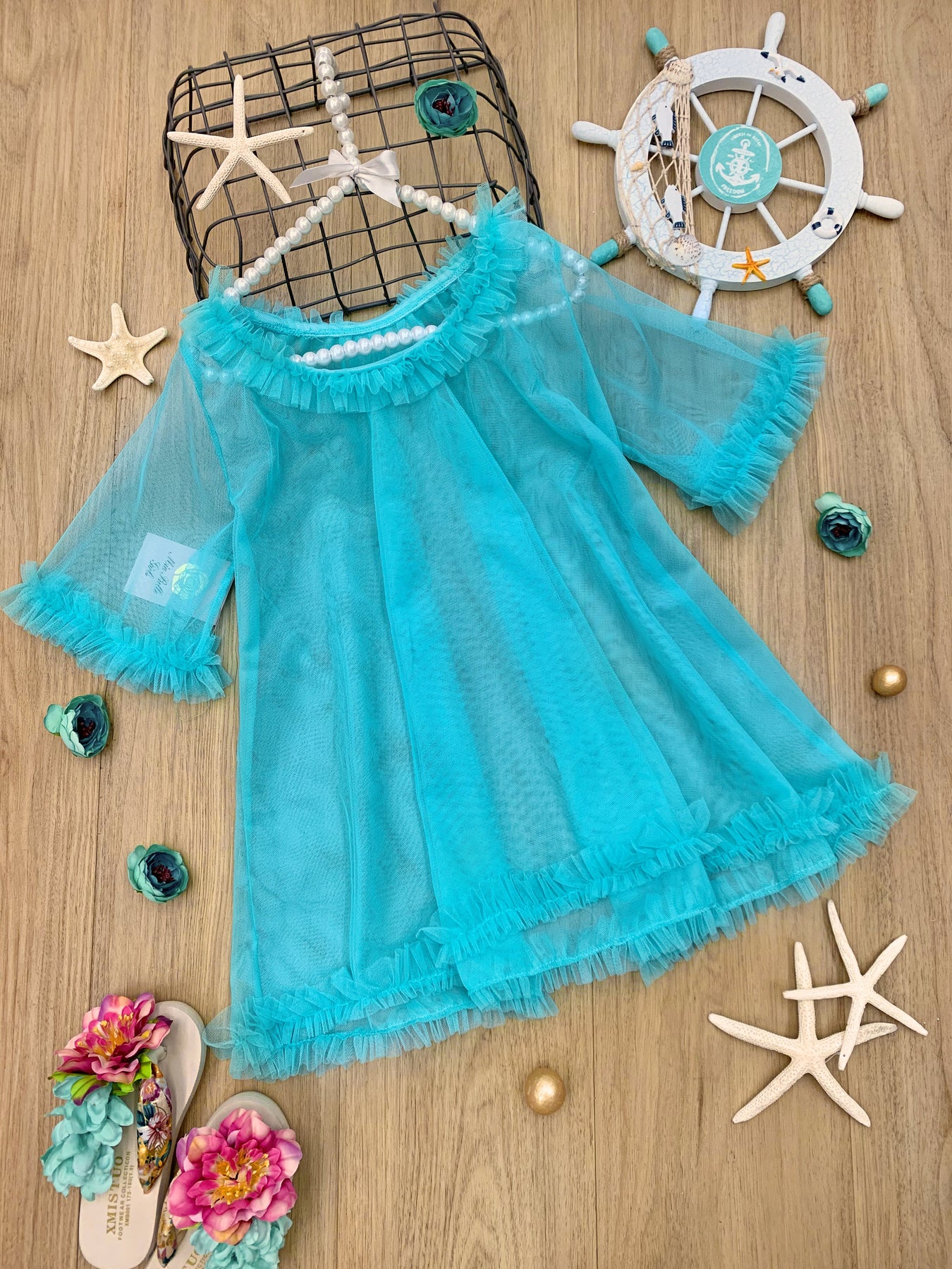 Your girl will relish in long days under the sun in this adorable cover-up with bright summer hues, ruffled edgesand breathablefabric, ideal for layering over a favorite swimsuit.