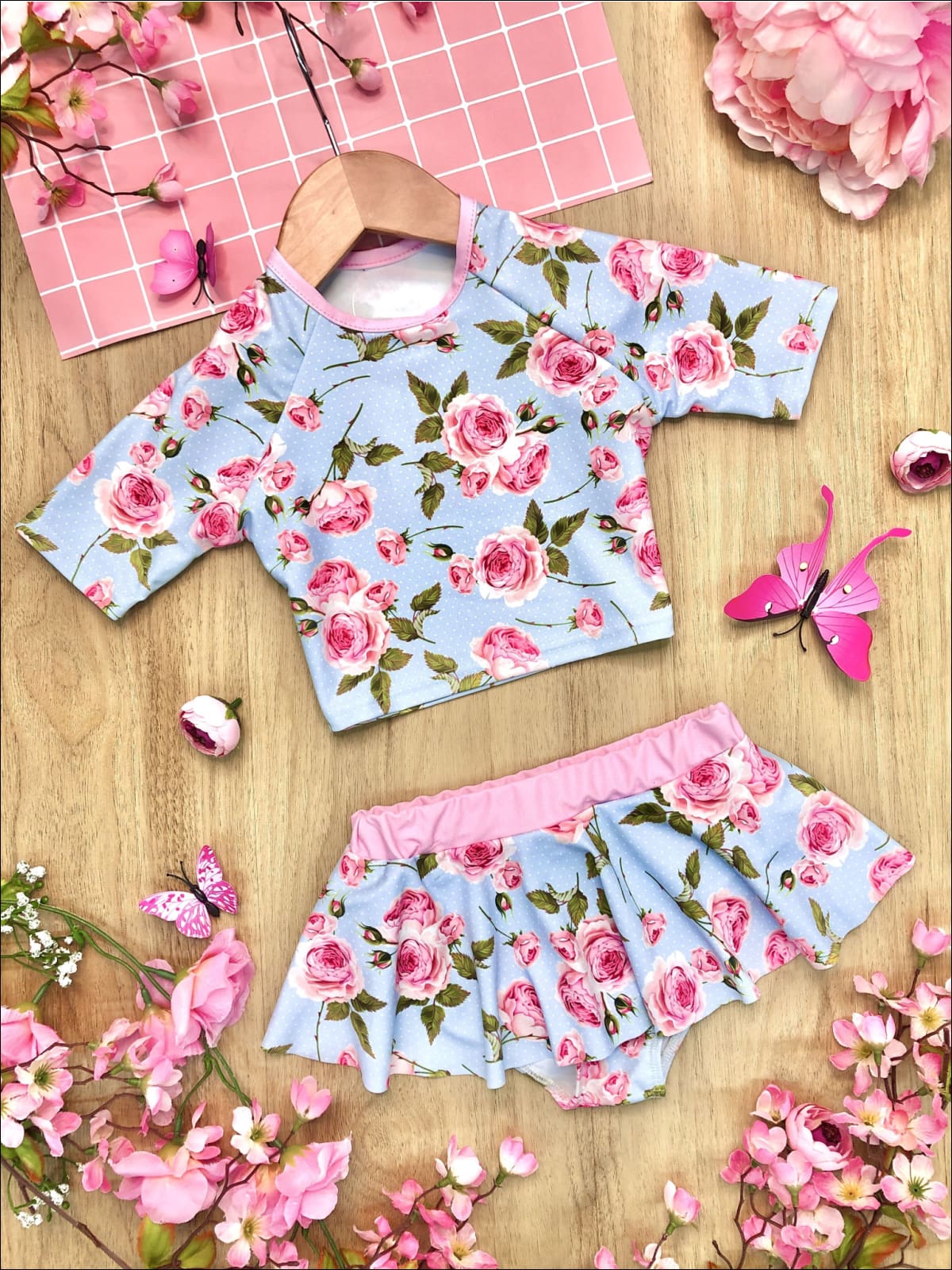 Rose Bud Beauty Rash Guard Two Piece Swimsuit
