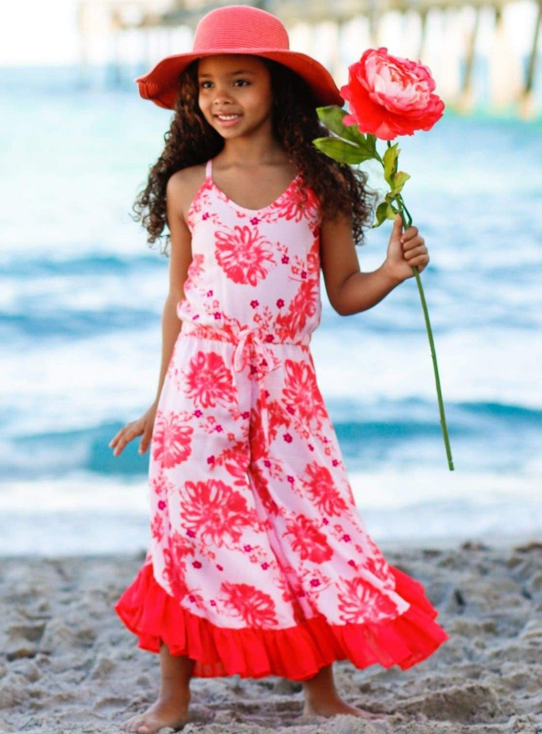 - Give your little lady that flawless head to toe look with this soft, spring-sweet jumpsuit, featuring fresh patterns and cool ruffles at the hem!