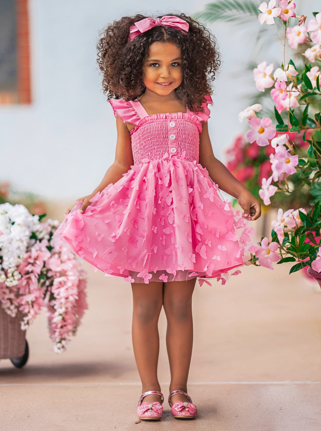 Mia Belle Girls | Pink Smocked Butterfly Dress | Girls Spring Dresses