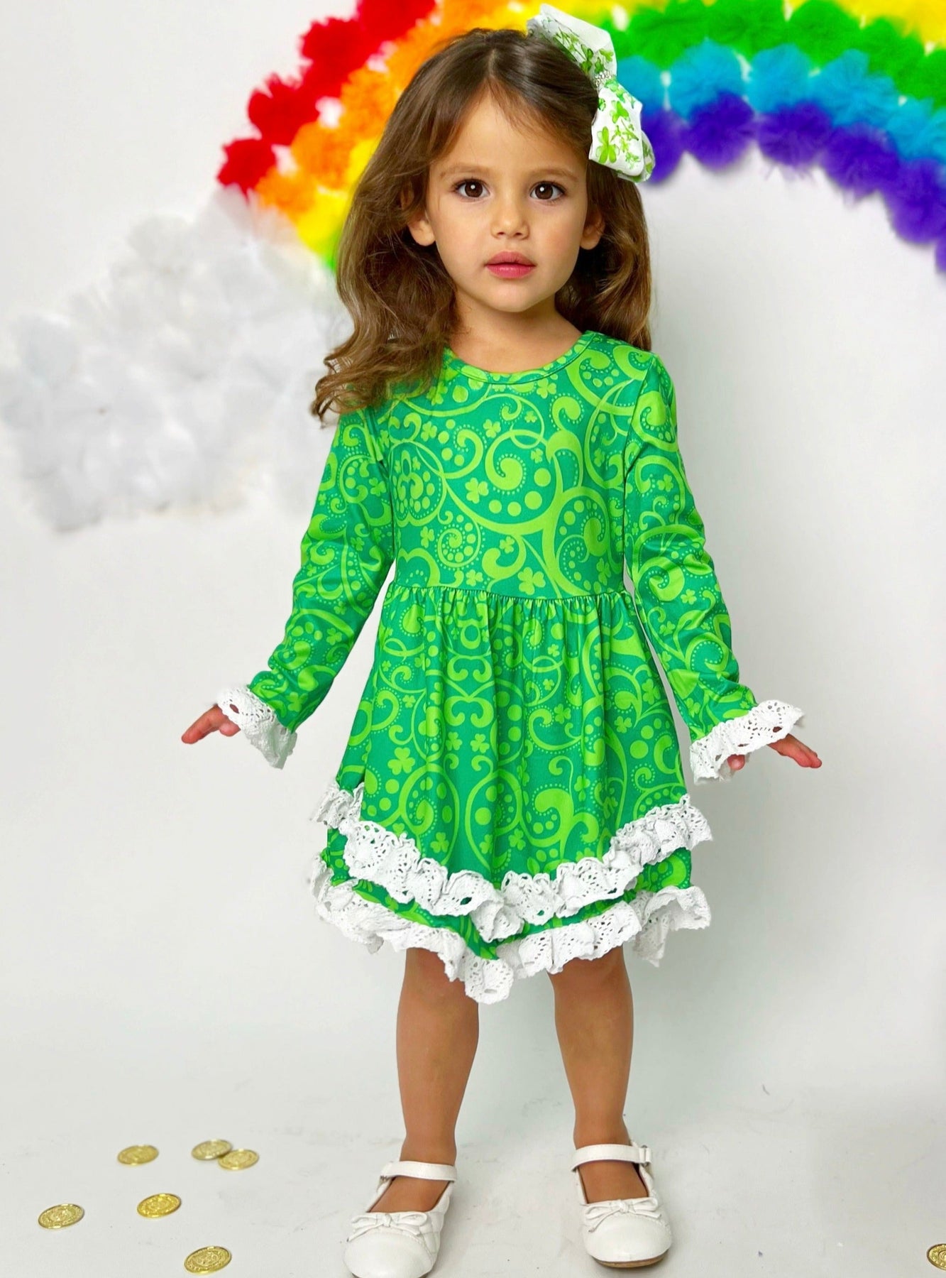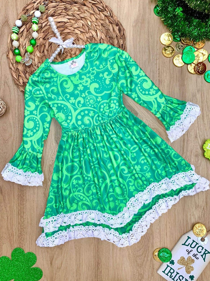 Girls St. Patrick’s Day Paisley Flared Sleeve Crochet 2-Tier Dress
