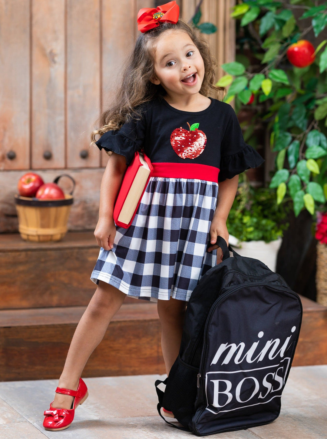 This preppy-chic apple dress set makes getting dressed for school a snap! No fussing with sleepyheads to look their best. She's ready to learn in style and take the cutest selfies!