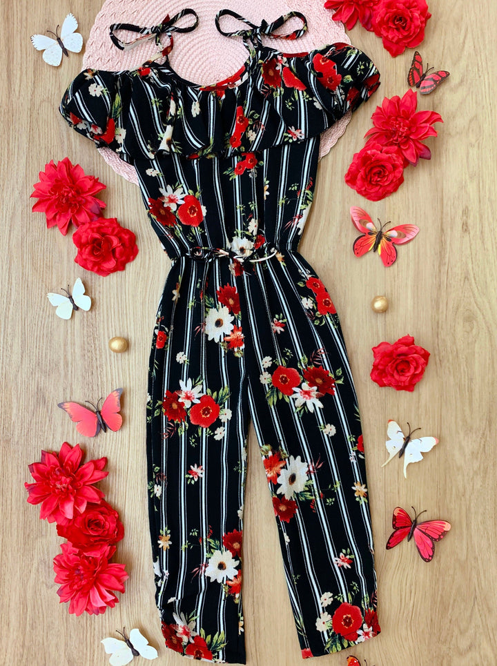 Stay wild, flower child! Time to leave them speechless with an adorable ruffle trim jumpsuit featuring a drawstring waist and adjustable shoulder ties. We know she'll turn heads and have everyone stunned with her gorgeous looks in the unique floral print and breathable soft material. It's almost too cute for words!