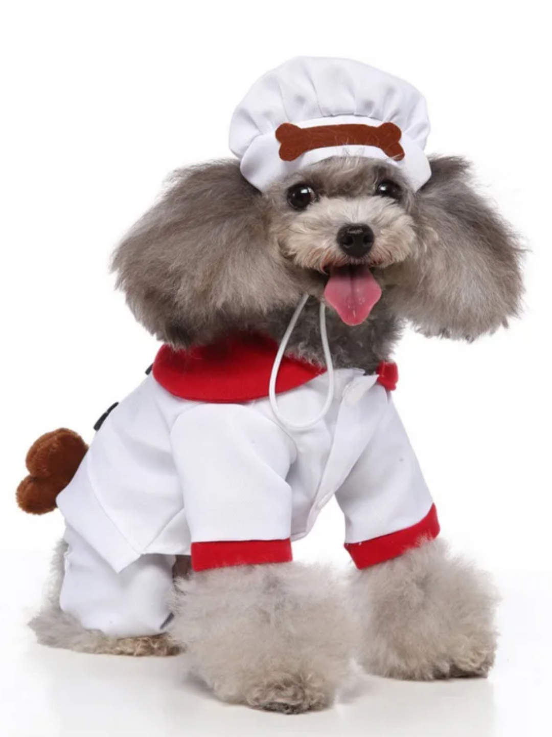 • Features a cute chef outfit complete with a matching hat, making your pet the center of attention.