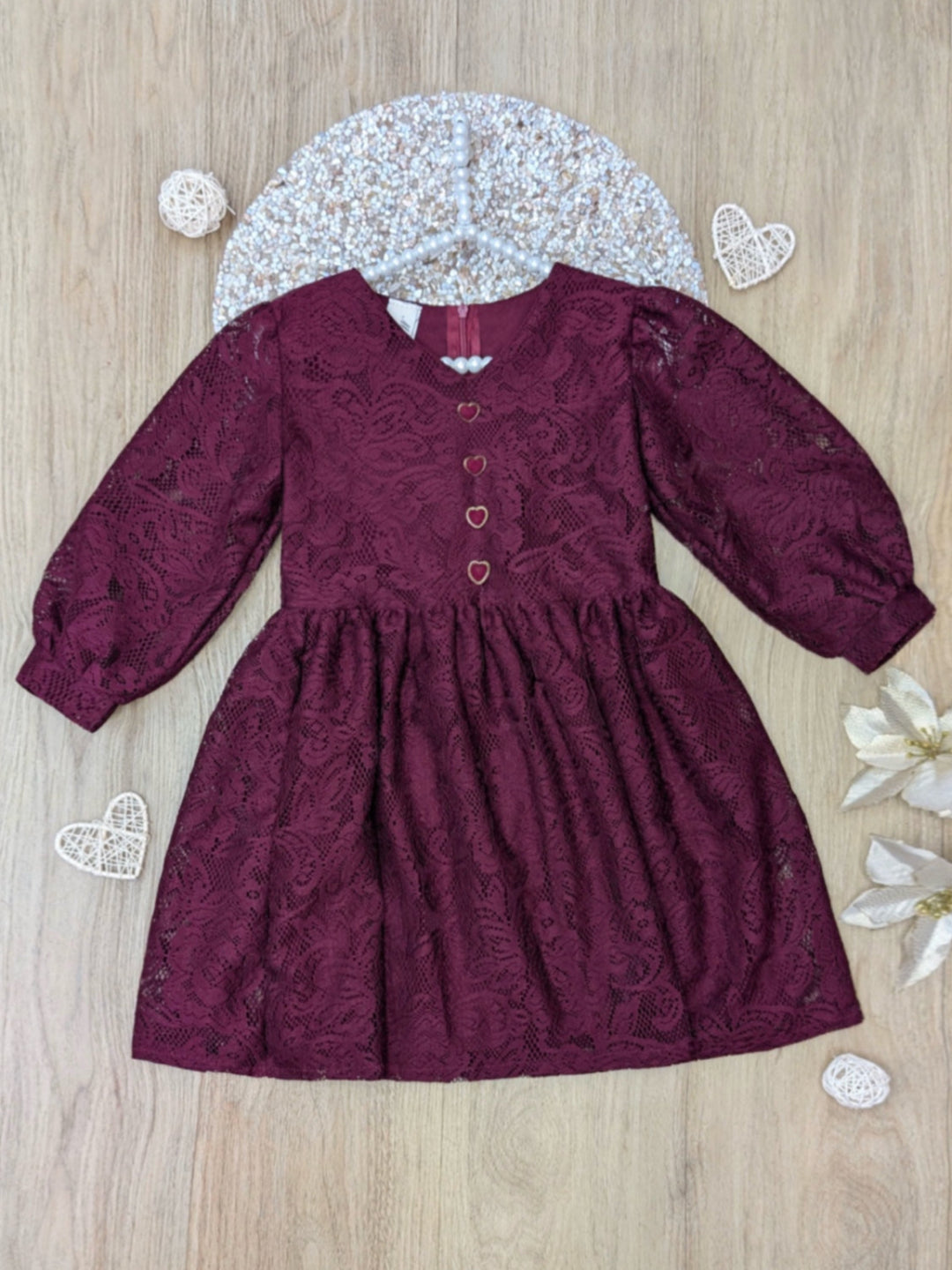 Let her shine in timeless elegance with this dreamy burgundy lace dress — perfect for holiday photos, parties, and seasonal celebrations.