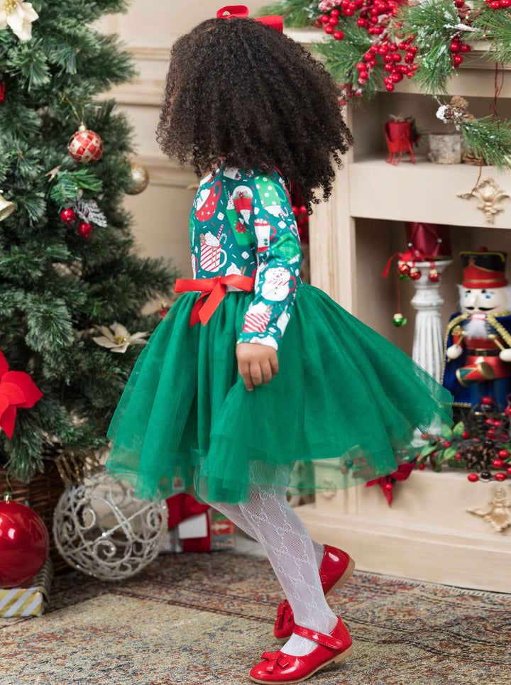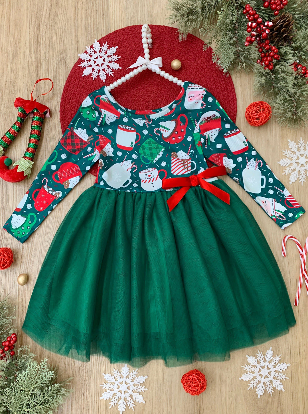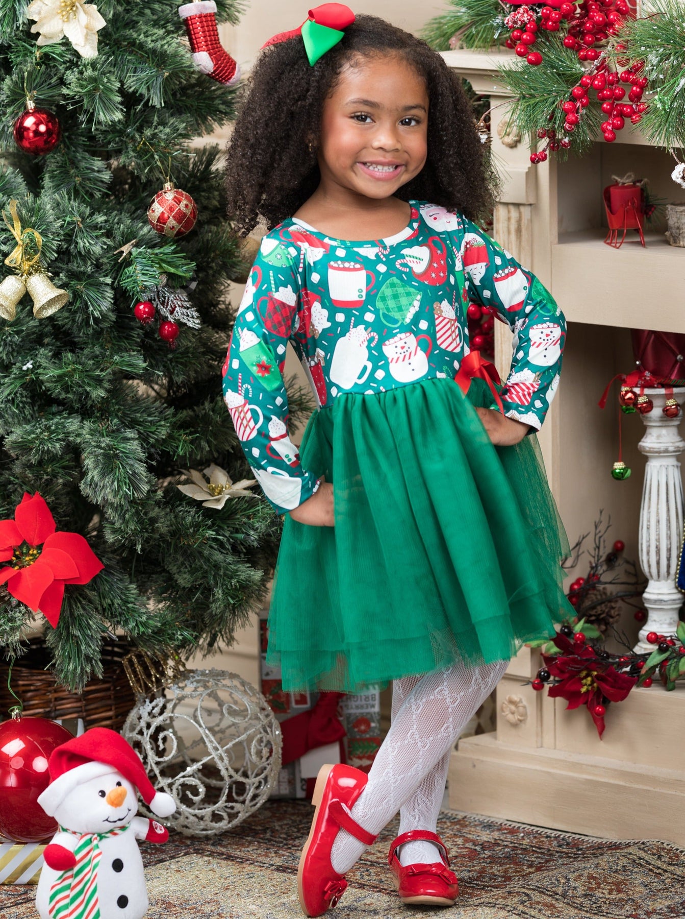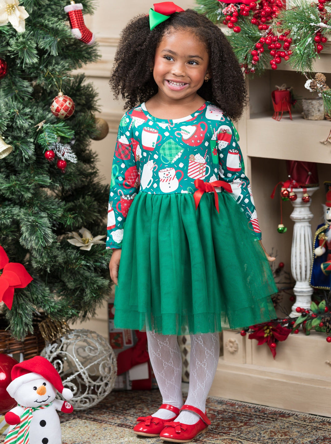 Cute Winter Dresses | Girls Hot Cocoa Holiday Mugs Tutu Dress