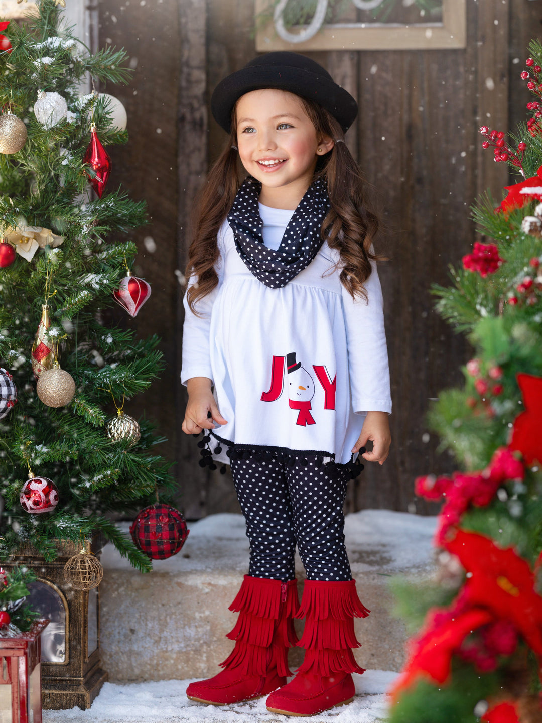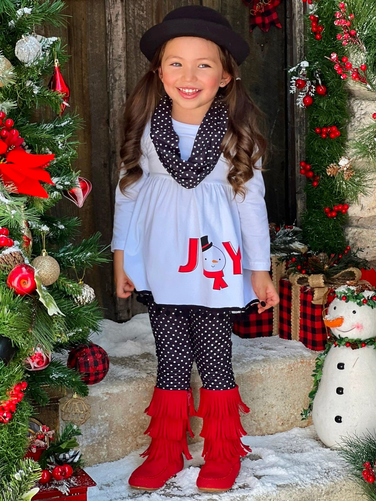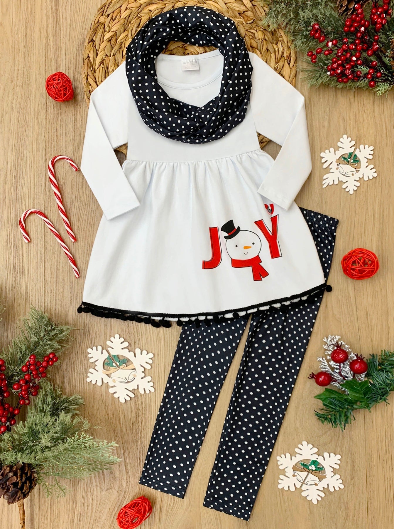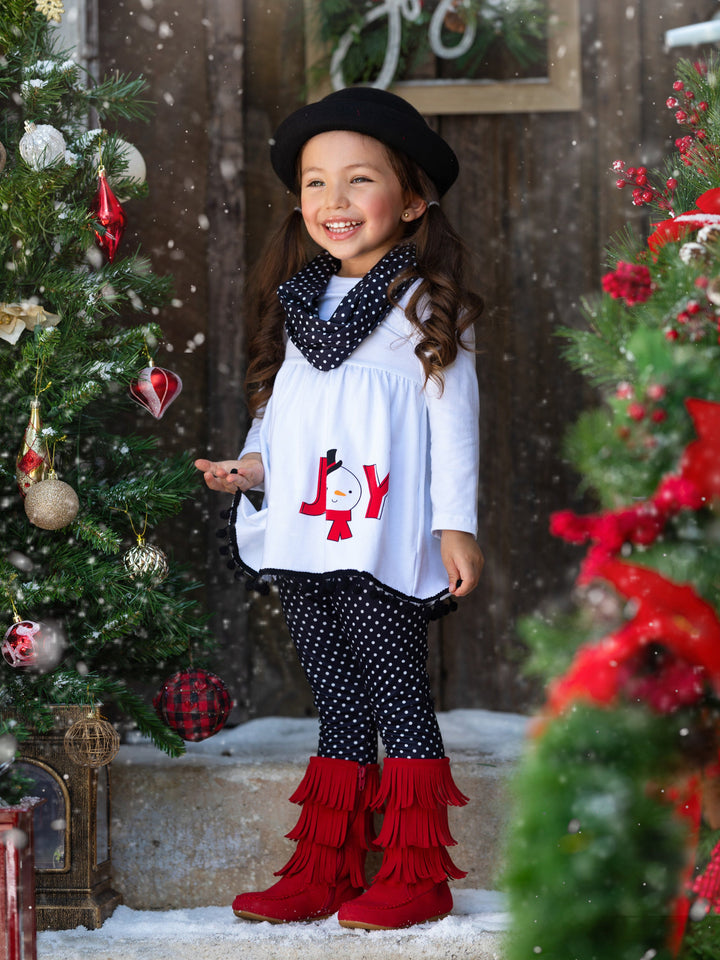 Joyful Days Tunic, Black Leggings, and Scarf Christmas Set