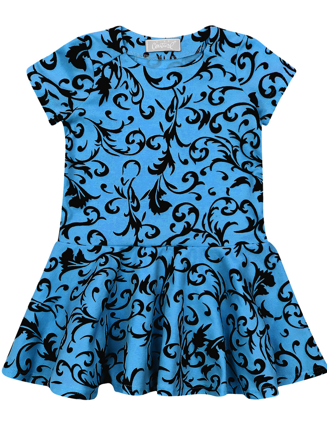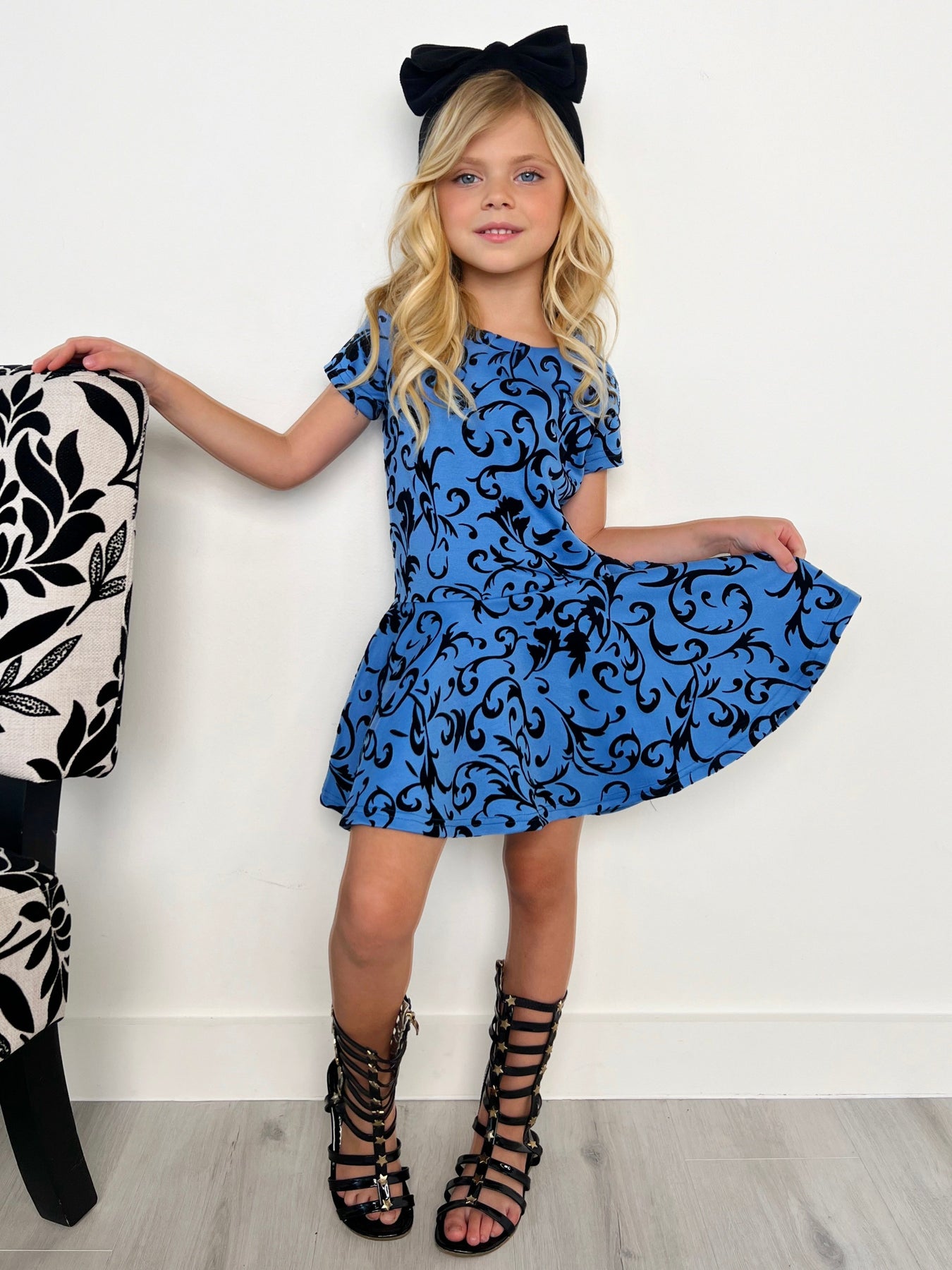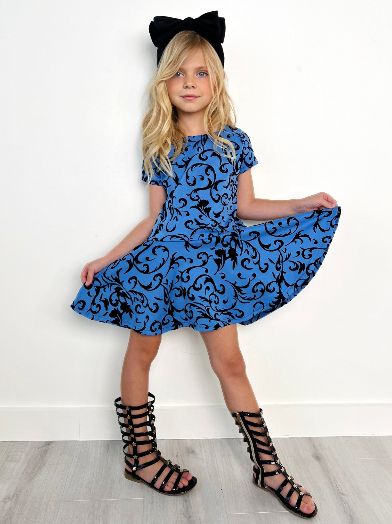 This beautiful blue velvet brocade vine dress is perfect for casual occasions. Whether she's showing off her confidence in class or hanging out with other besties, she'll love the flowy fit and fabulous fabric.