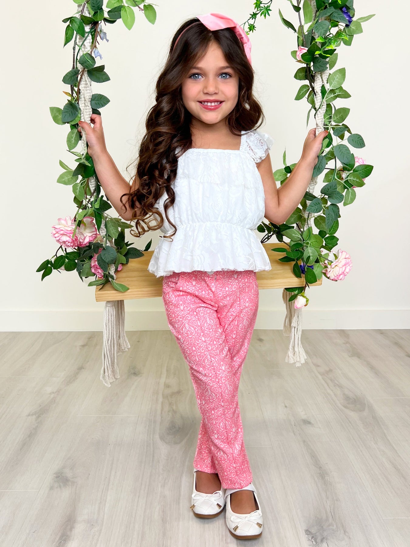 Kids Couture x Mia Belle Girls Pink Jacquard Pants