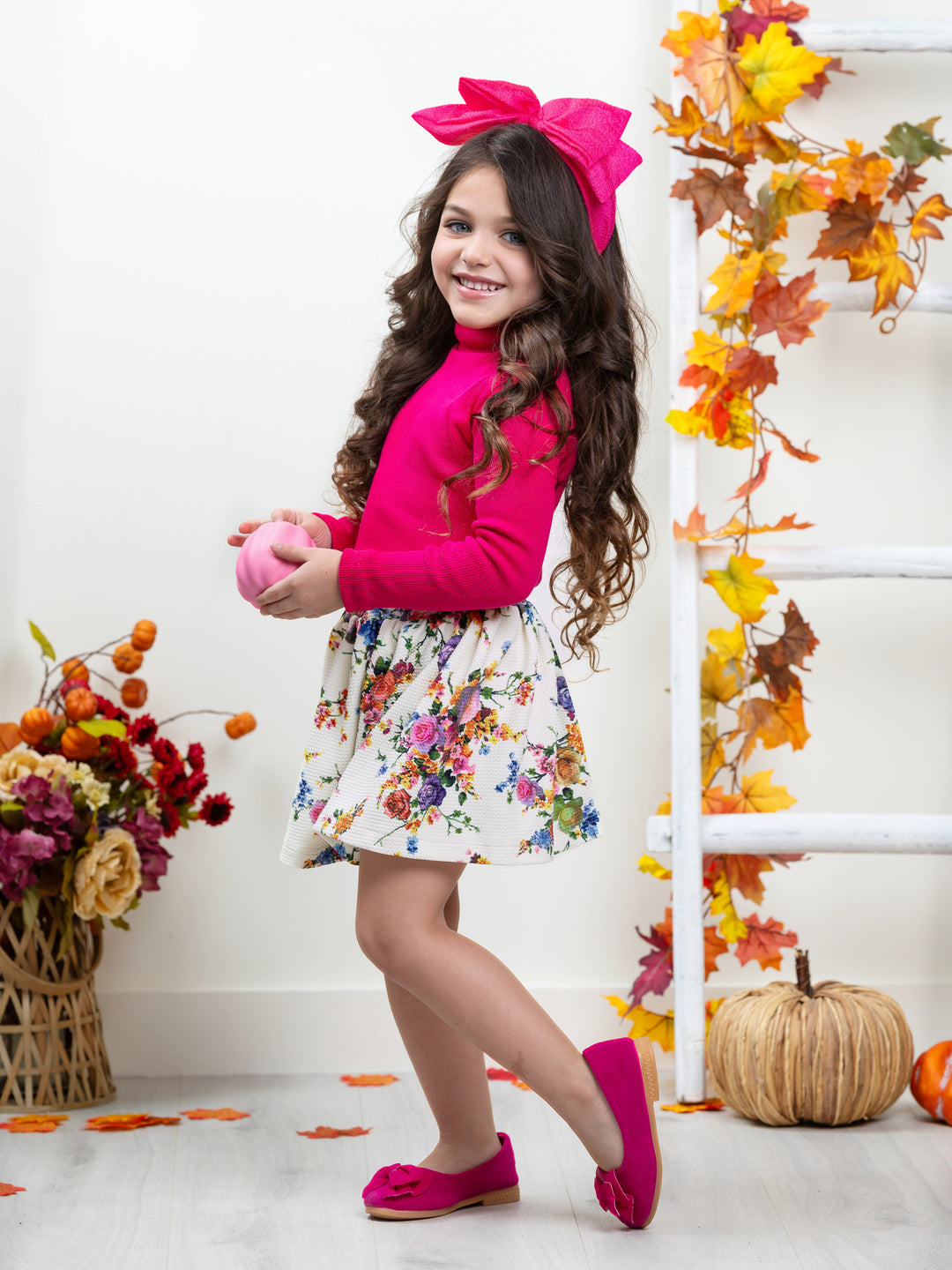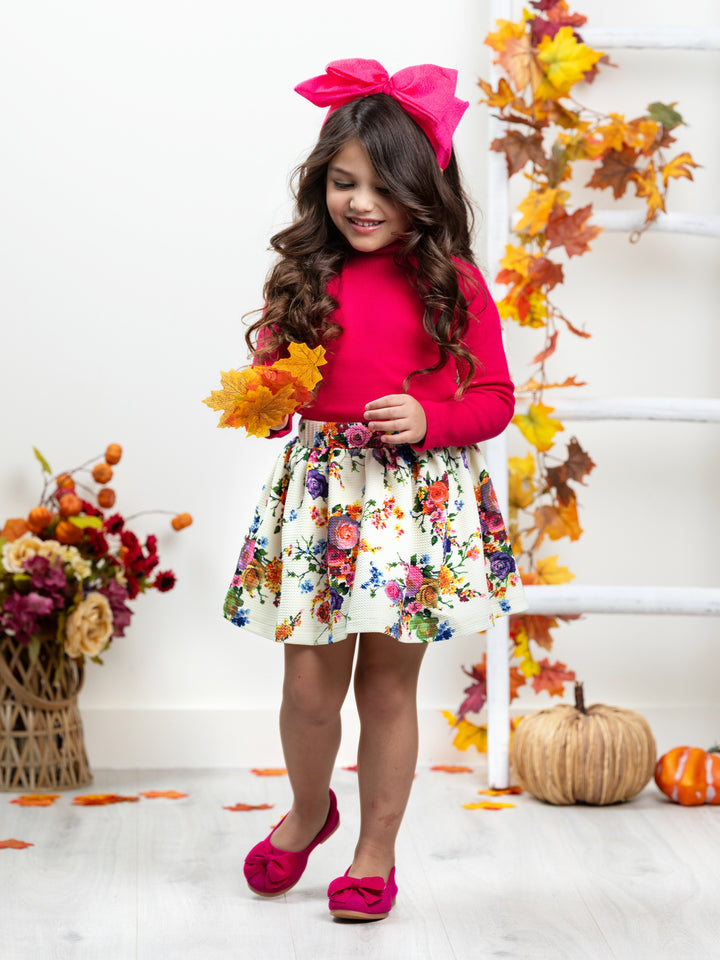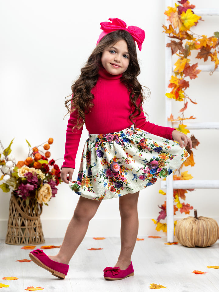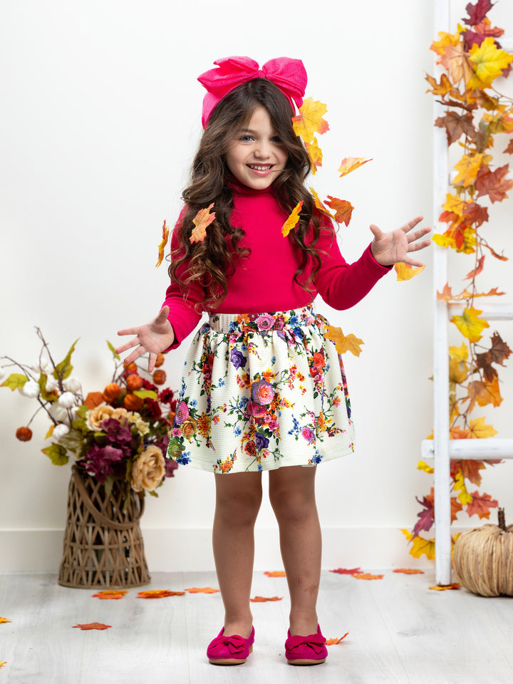 Find the perfect mix of comfort and style in our unique rainbow floral pleated skirt. Covered in a gorgeous array of flowers, it's a total power piece that helps girls stand out with cute confidence.