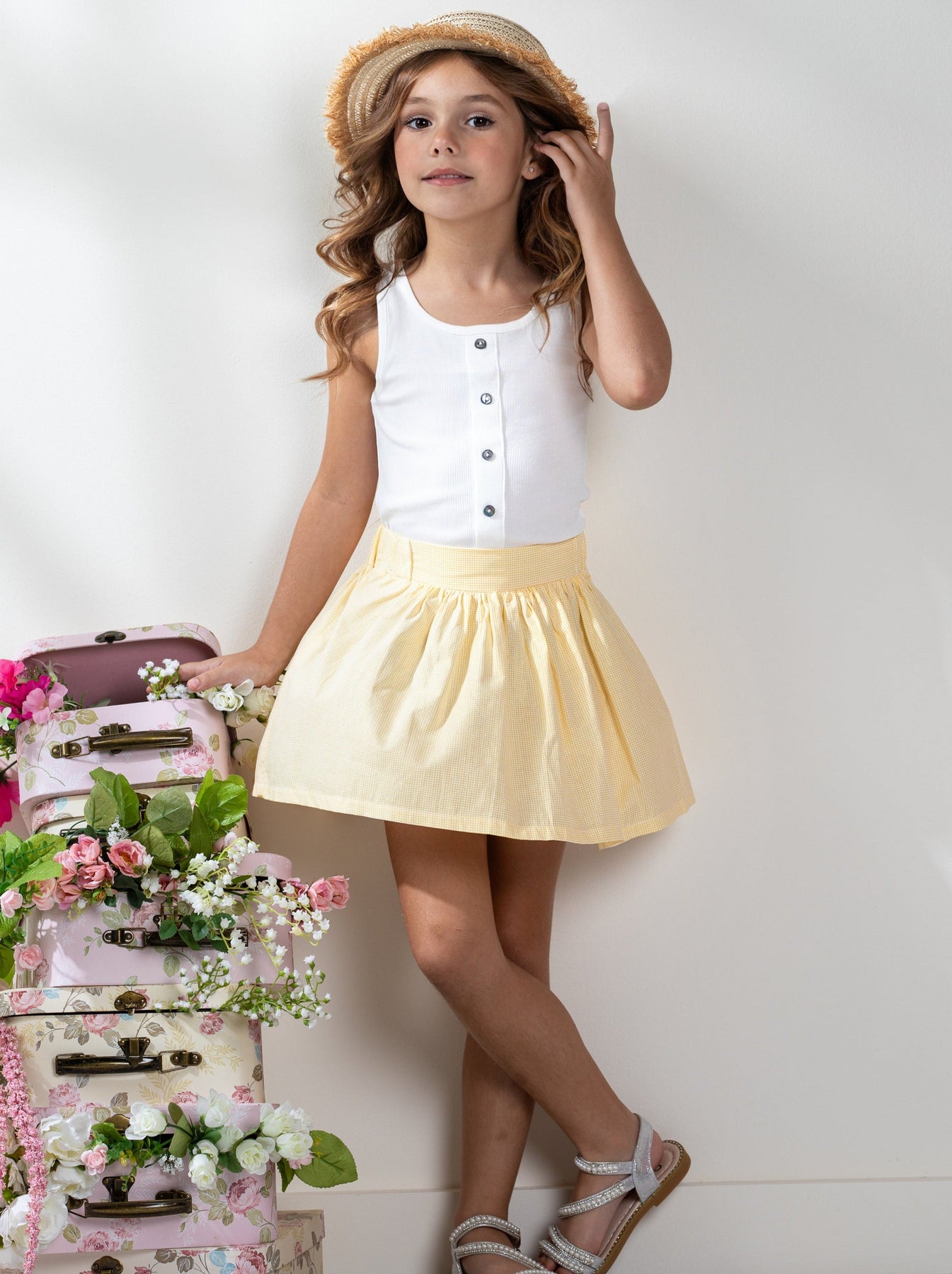 Make every day fashionable in our bright yellow microdot tennis skirt. We put a super sweet twist on a classic silhouette to bring your fashionista the best summer-style accessory ever!