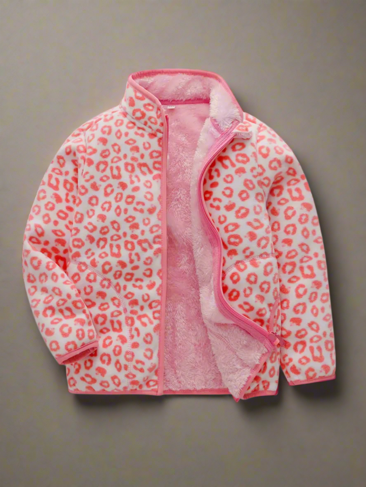 Keep your little one snug and stylish this fall and winter with this soft and warm fleece jacket, perfect for those chilly days.