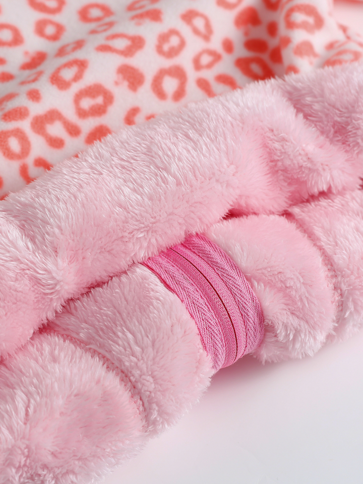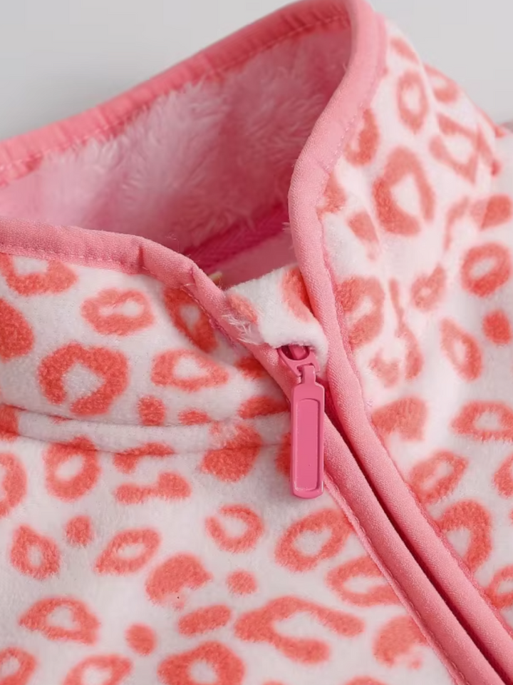 The playful pink leopard print adds a fun and trendy touch, while the cozy fleece lining ensures maximum warmth and comfort.