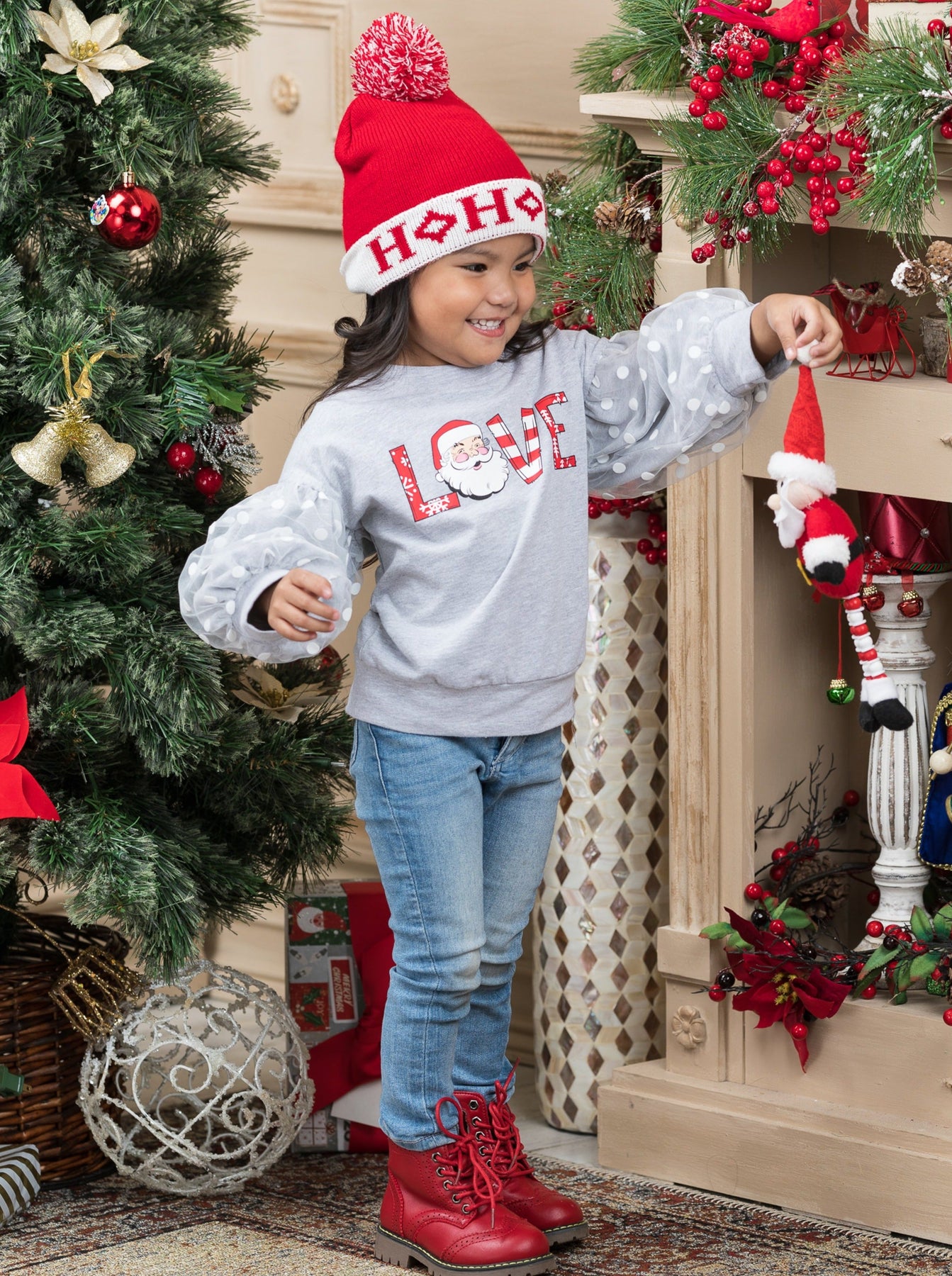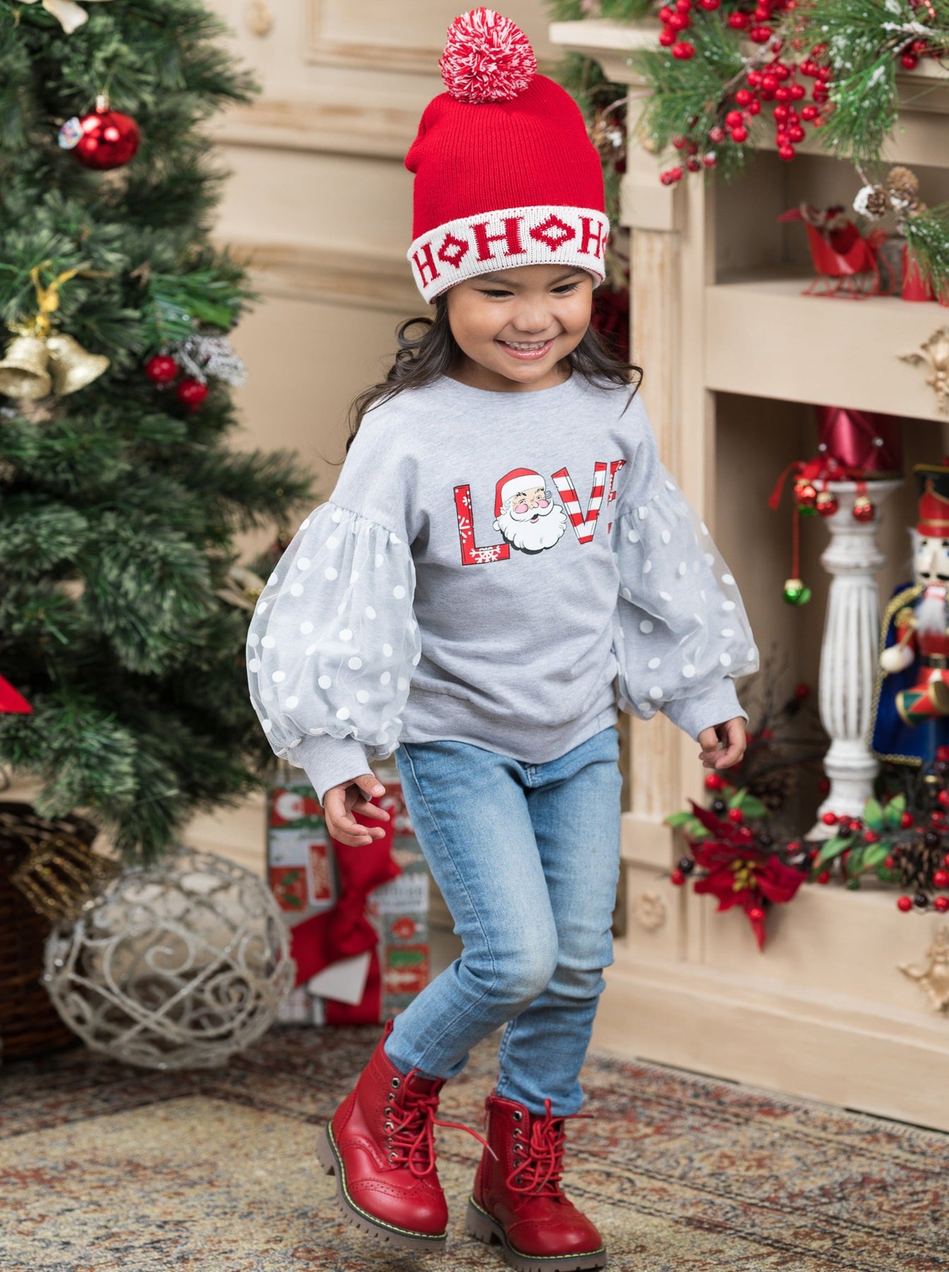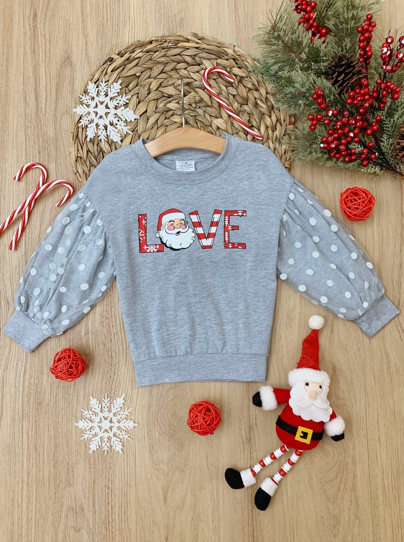 Winter Tops For Girls | Love Santa Polka Dot Tulle Sleeve Sweatshirt