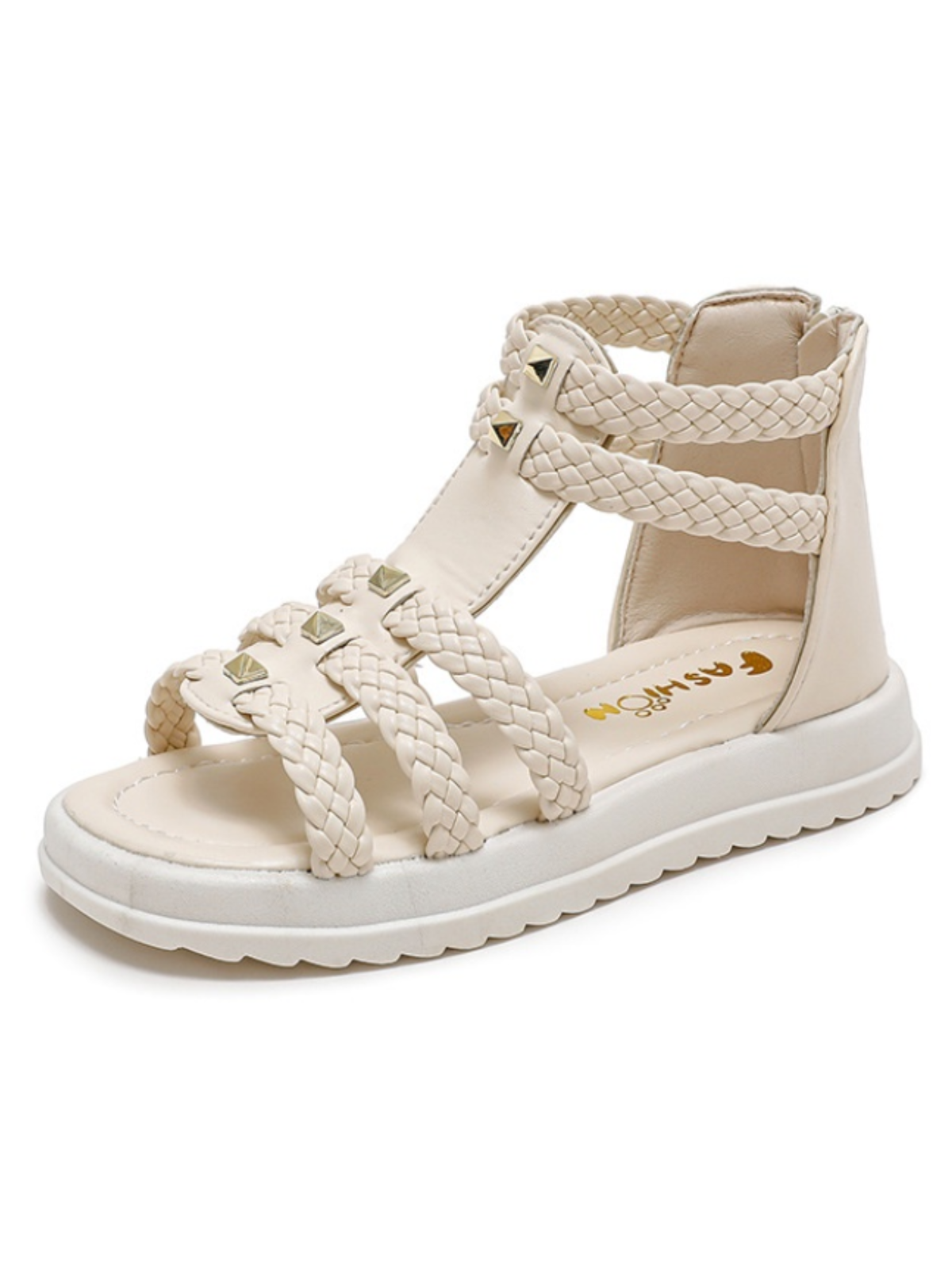 - A strappy gladiator sandals for little girls that give an instant confidence boost? Yes, please! This gorgeous pair has braided straps and pyramid stud details for a runway-worthy finish. Made extra fab for your style diva!