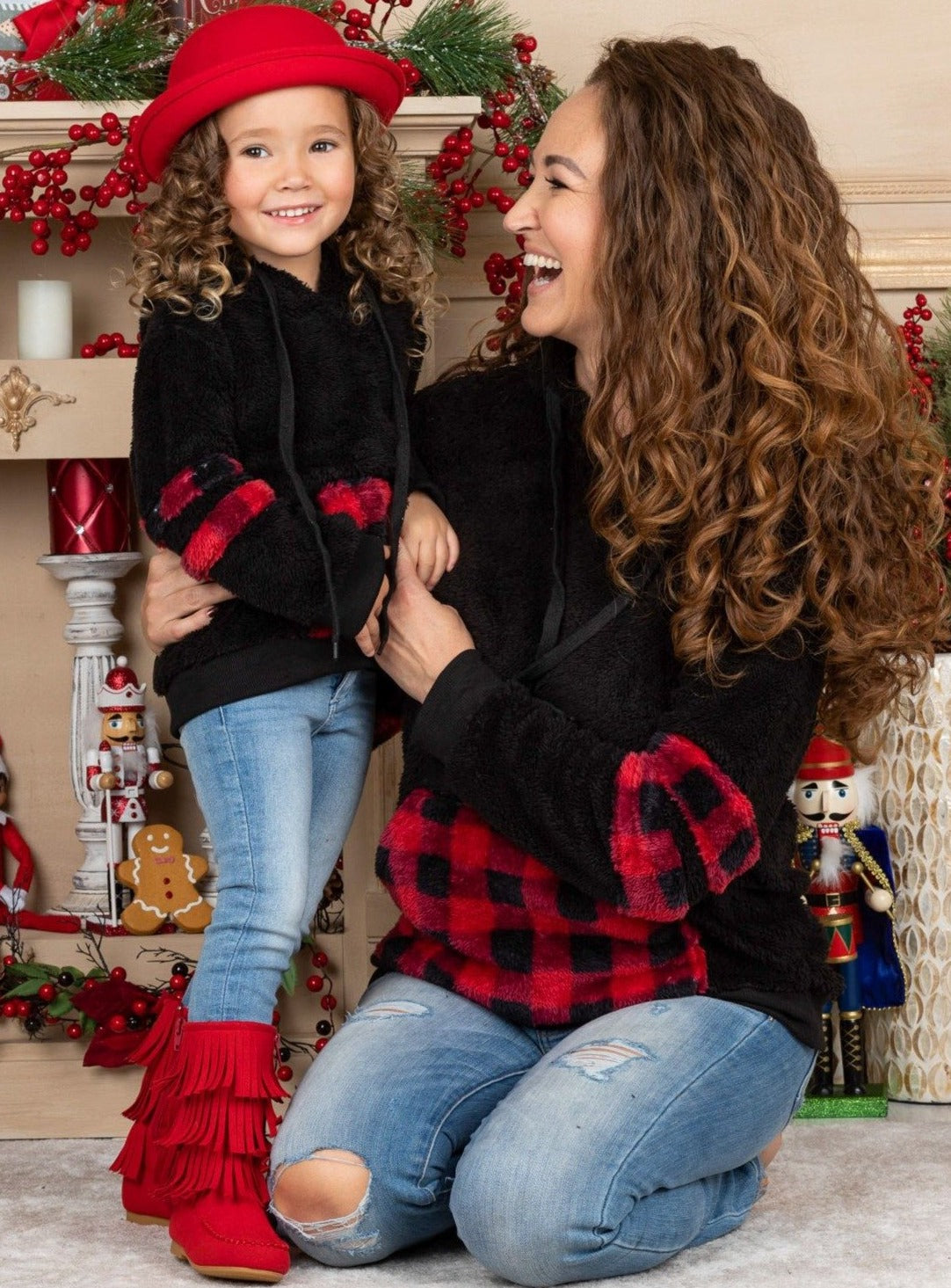 Mommy and Me Buffalo Plaid Plush Hoodie