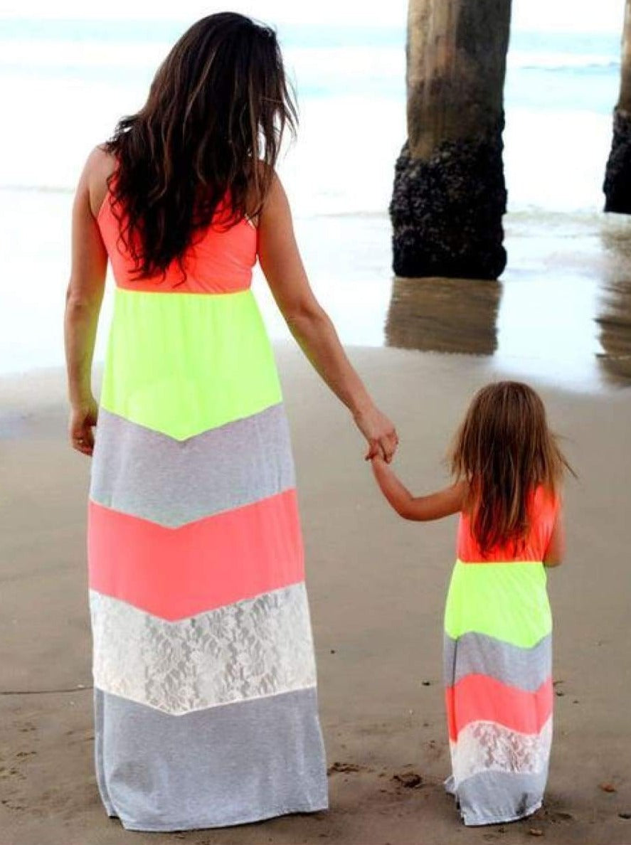 - These mother-daughter matching sleeveless maxi dresses are EVERYTHING! So vibrant and fun for twinning in the sun!