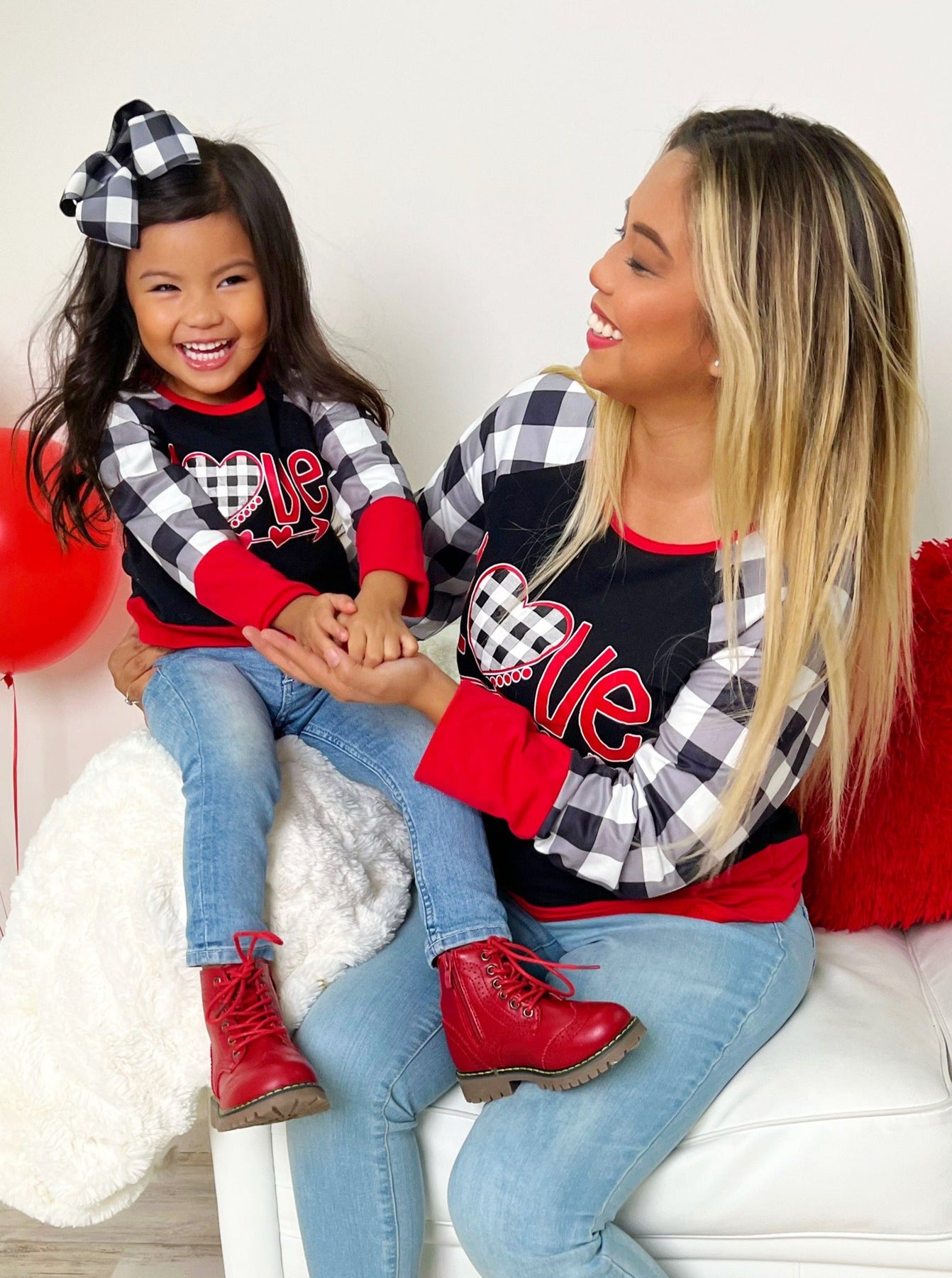 Mommy and Me Cupid's Love Plaid Raglan Tunic