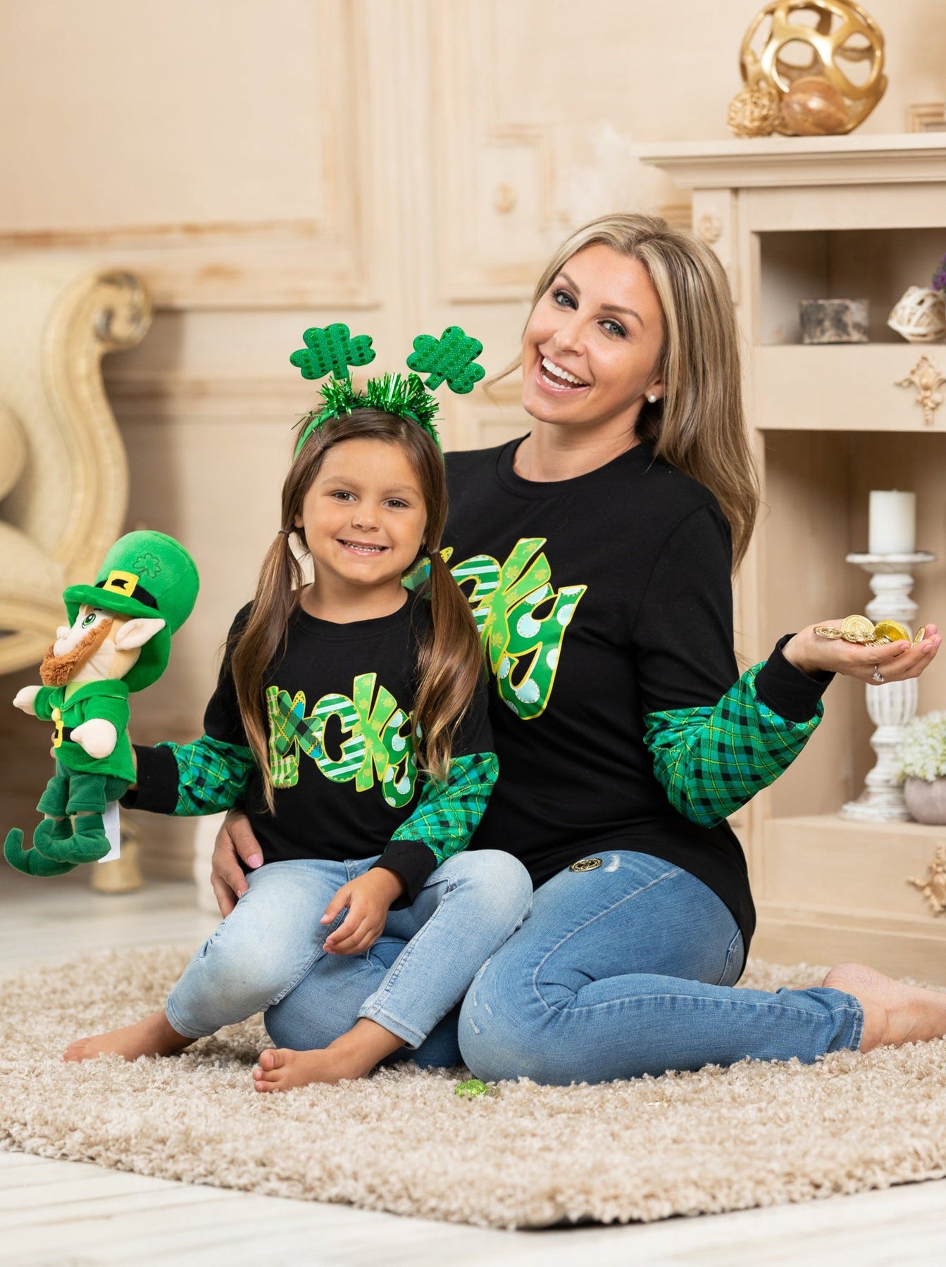- Show how lucky you are to have each other in these charming matching color-block pullover tops perfect for St. Patrick's Day fun. Look cute and comfy while making other moms clover green with envy. Animated graphic text and argyle plaid sleeves make this a unique top with jeans, leggings, and shorts.