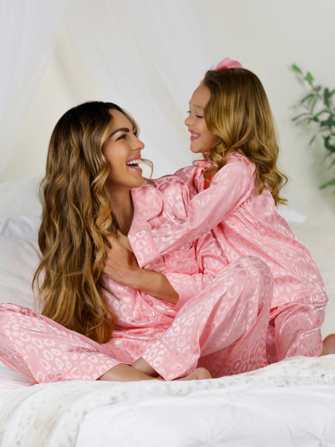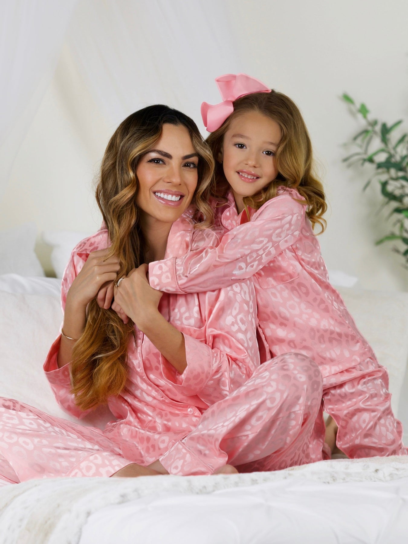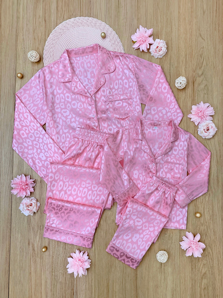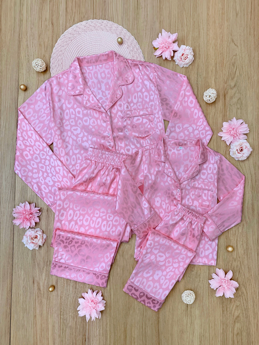Mommy and Me Pink Leopard Print Silky Pajama Set