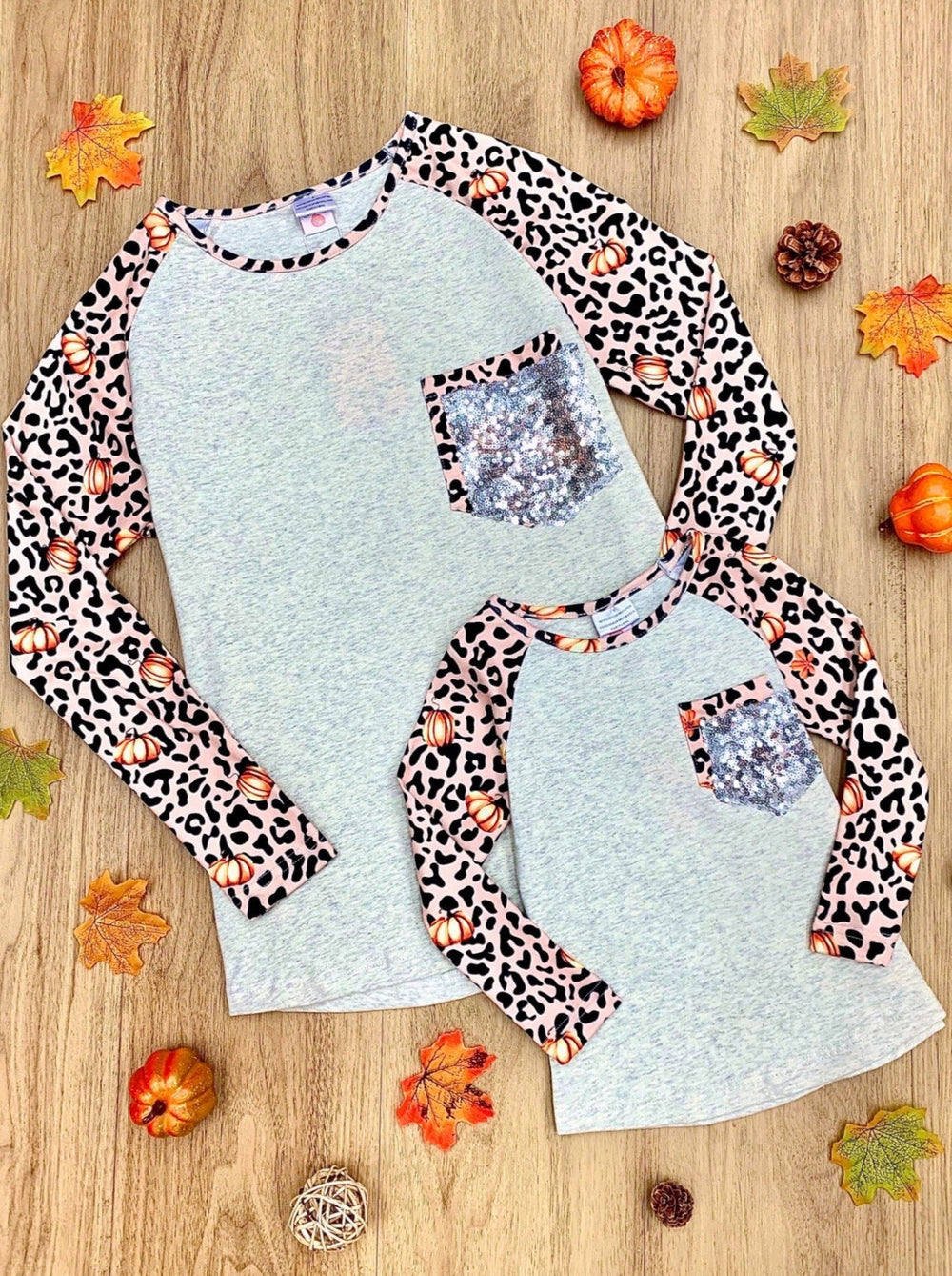 Mommy and Me Matching Tops | Pumpkin Leopard Sleeve Top | Girls Boutique