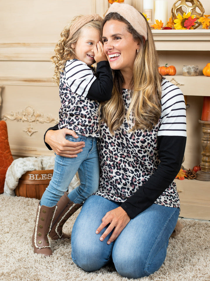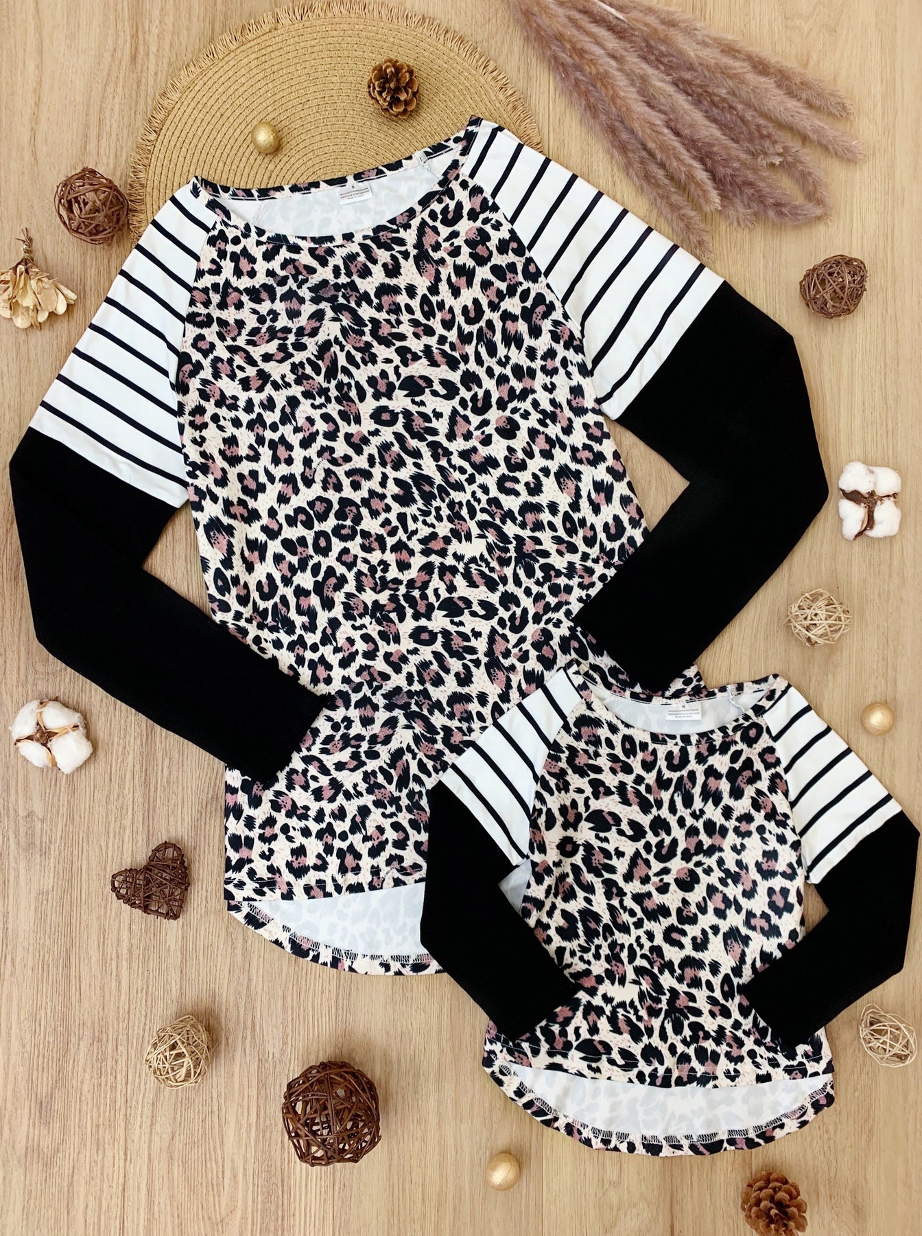 - Colorblock tops are all the rage this season. Make sure you and your mini maven keep up with the trends as the weather gets colder in fierce leopard print and sassy striped.