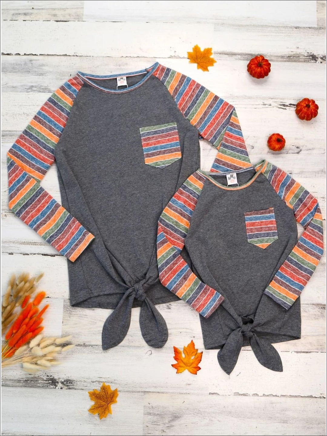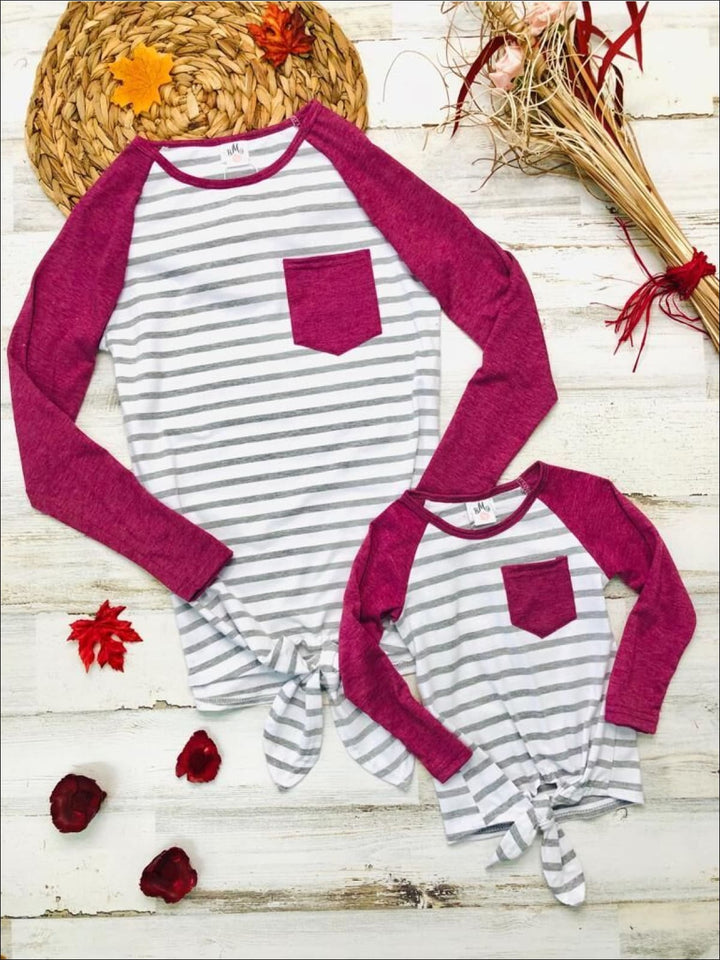 Mommy & Me Matching Raglan Sleeve Knot Pocket Top - Mia Belle Girls