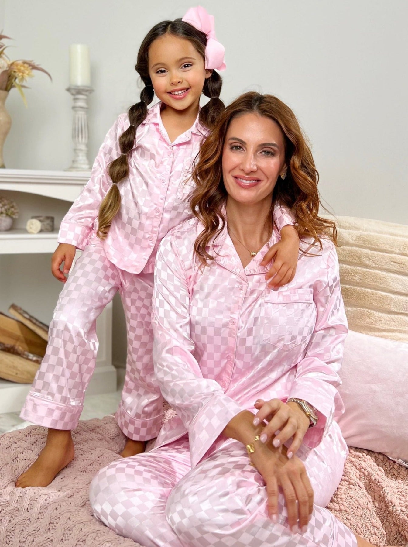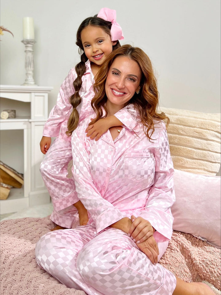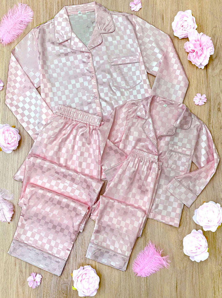 Mia Belle Girls Pink Checkered Silk Pajamas | Mommy and Me Pajamas