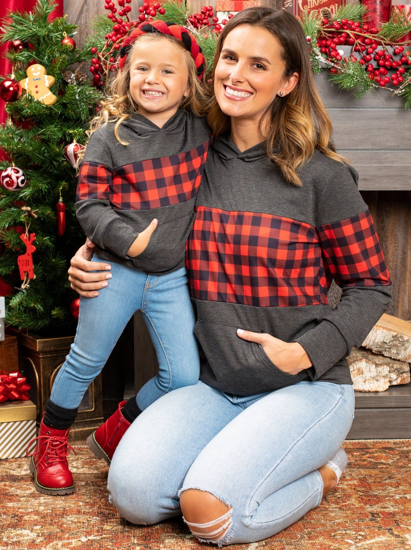 • Get these charming matching hoodie sweaters no mother-daughter duo can resist. Look cute together while staying cozy in Buffalo plaid comfort. And it comes with a convenient pocket? Need we say more?