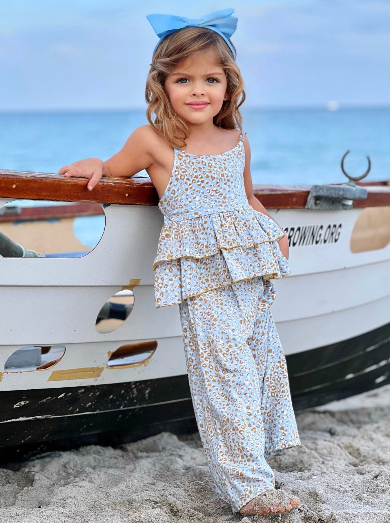 - Comfort clothing can be fabulous too! Our leopard print palazzo pants set is designed to pamper fierce little fashionistas. Now, your mini trendsetter can stay cozy while looking extra sassy.