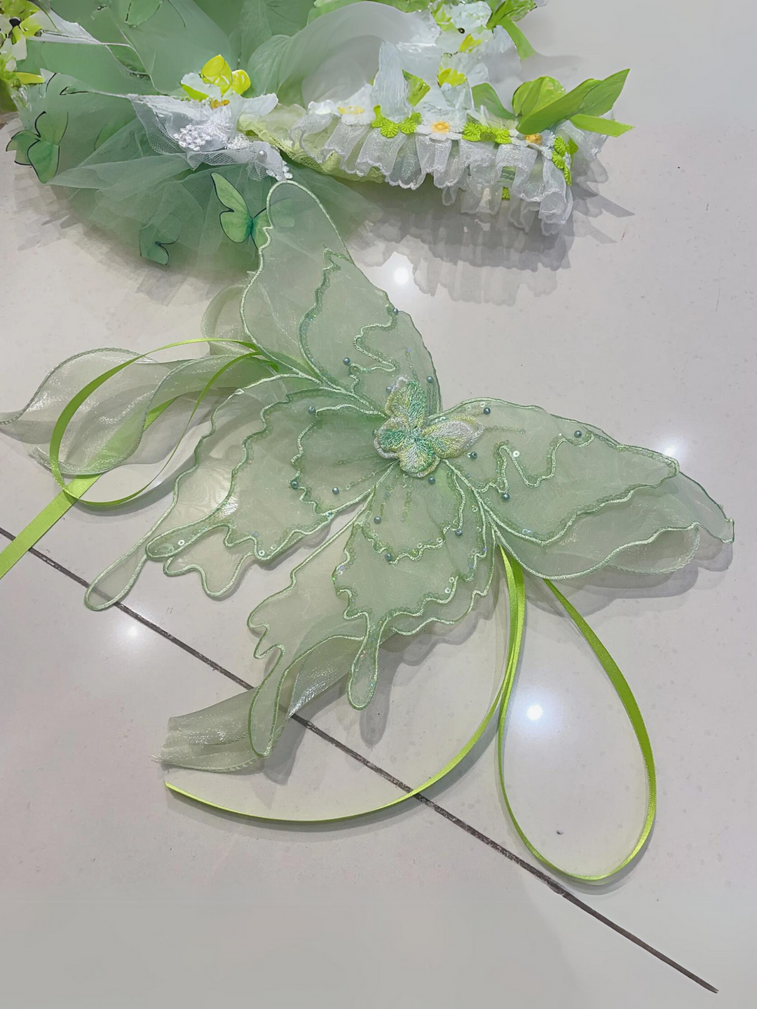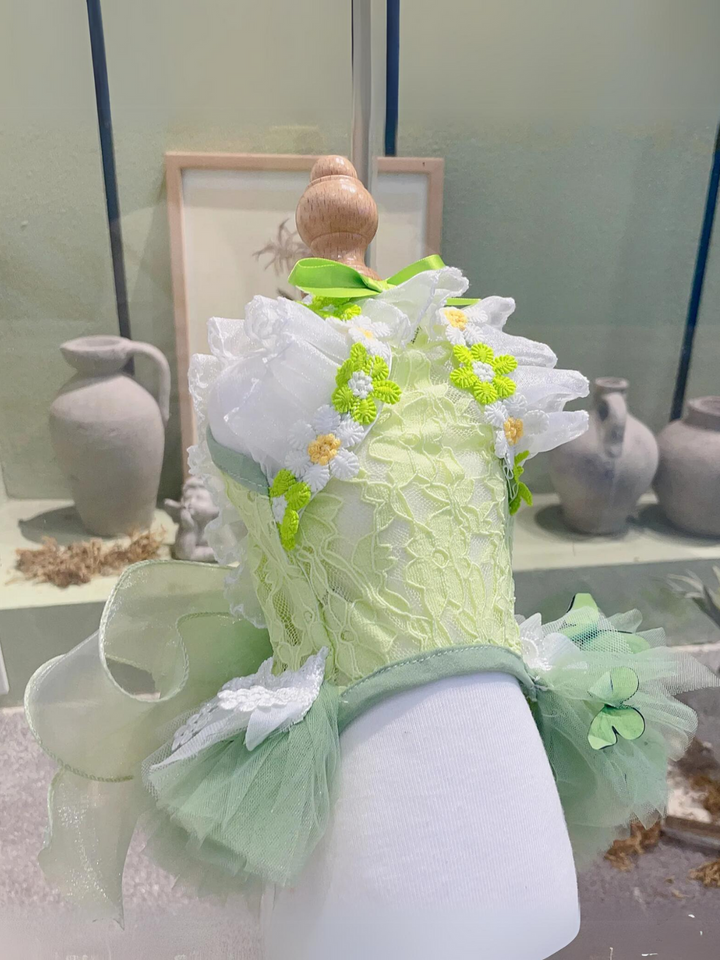 This Green Lace Flower With Wing Princess Halloween Dress is designed for small to medium dogs, featuring delicate lace and flower embellishments that make your pet look like a fairy-tale princess.