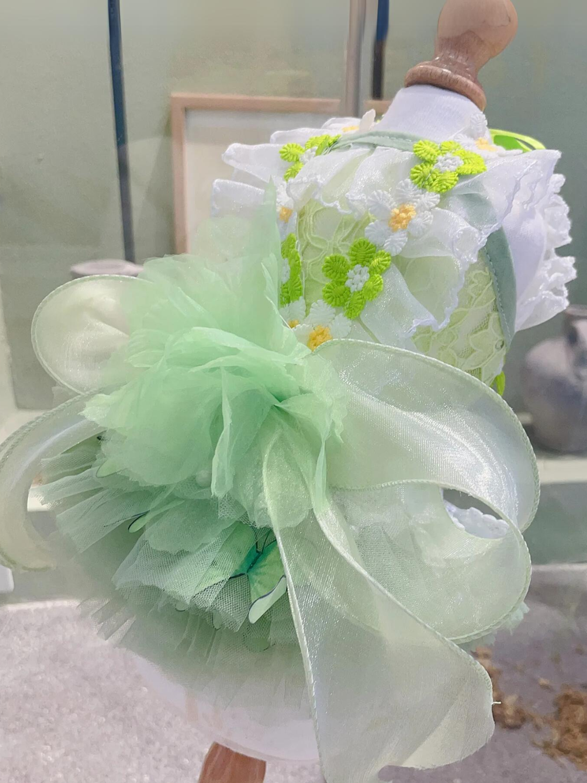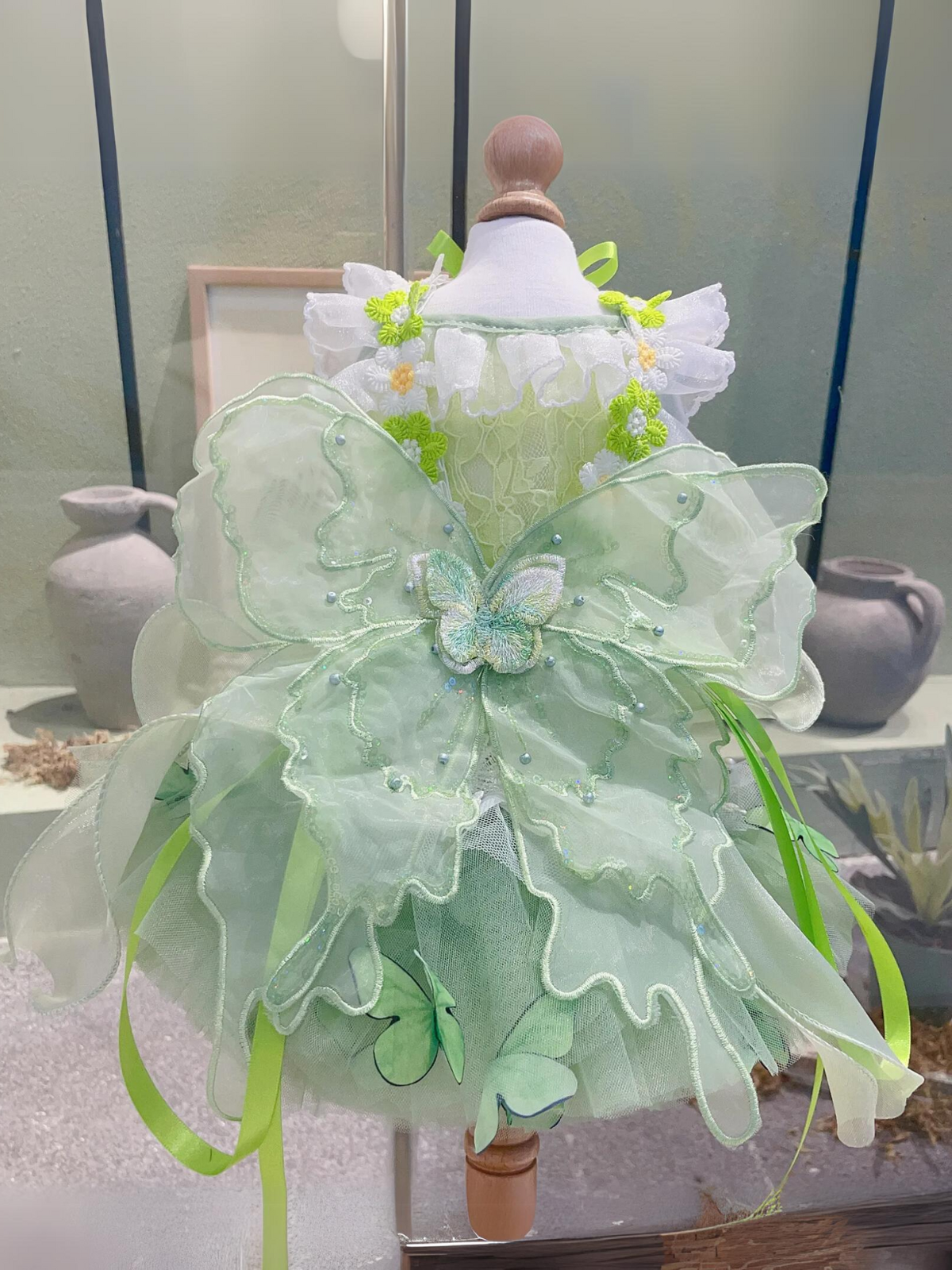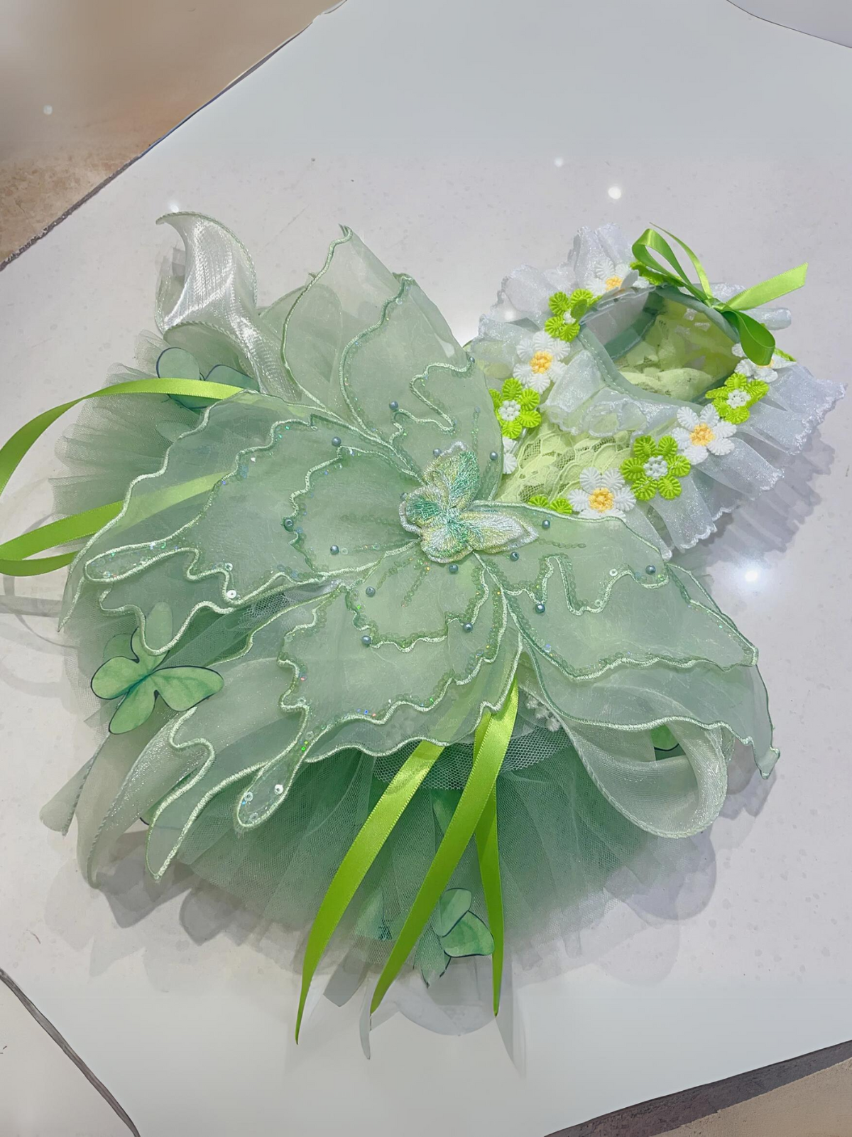 Dog Green Lace Flower With Wing Princess Halloween Dress