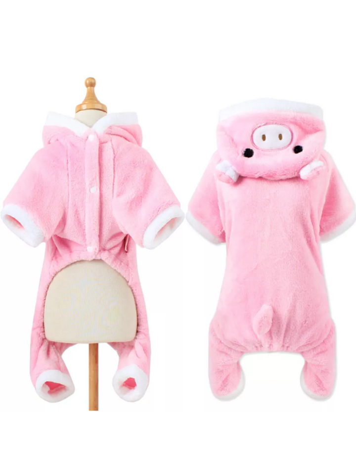 - Features an adorable piggy face hoodie with a curly tail, making your pet stand out during Halloween or any dress-up occasion.